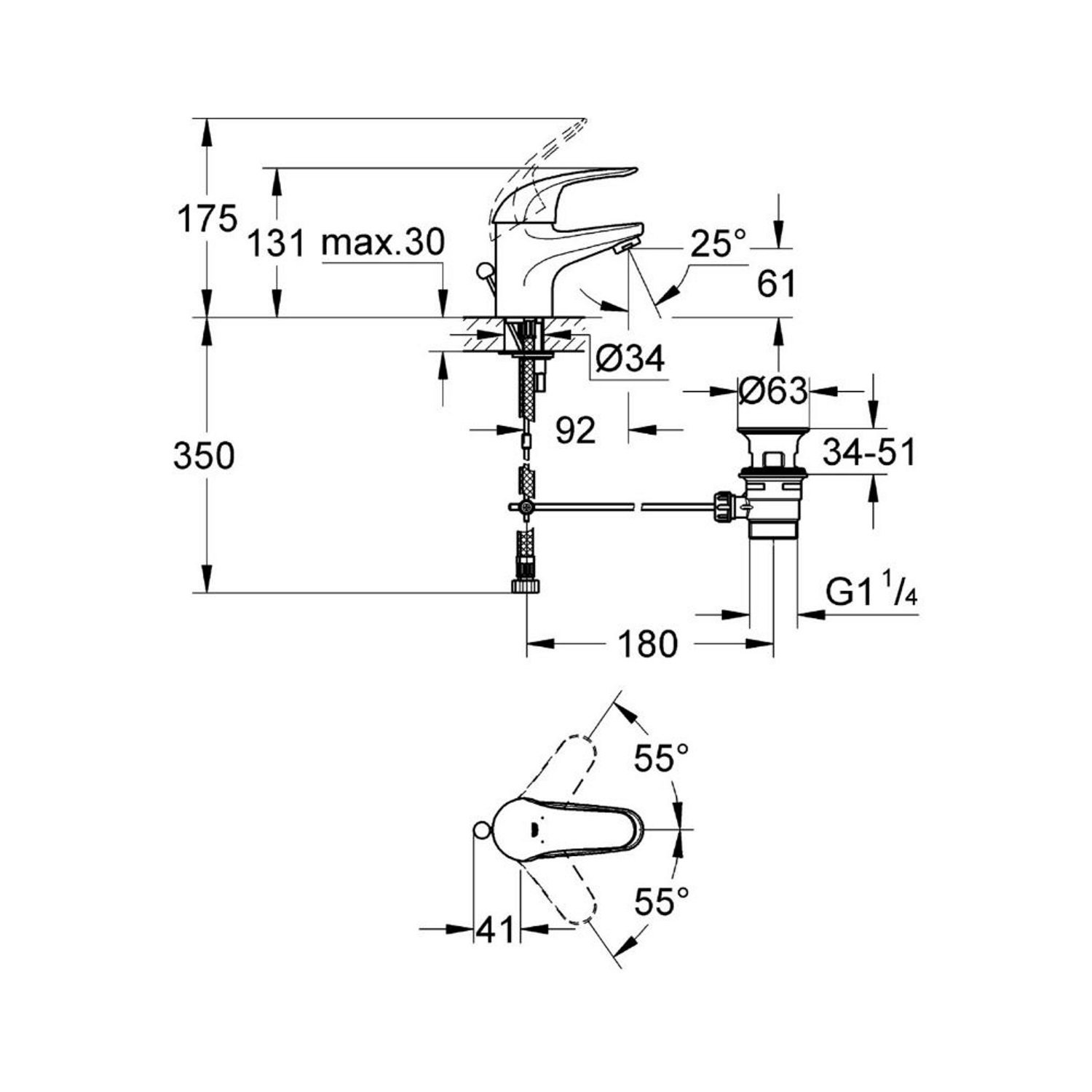 Specificaties Grohe Swift Wastafelmengkraan Waste Chroom
