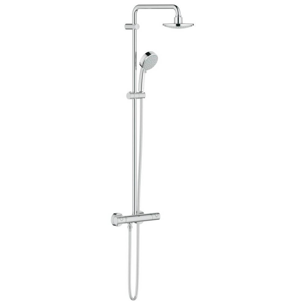 Dit comfortabele douchesysteem voorzien van hoofd- en aparte handdouche laat je kiezen uit twee straalsoorten: met de Jet straal begin je verfrist aan je dag en met de zachte Rain straal. En door de GROHE DreamSpray technologie wordt het water gelijkmatig over alle sproeigaatjes verdeeld. De thermostaatkraan is voorzien van GROHE TurboStat zodat het water bijna direct op de gewenste temperatuur is en houdt deze bovendien constant.