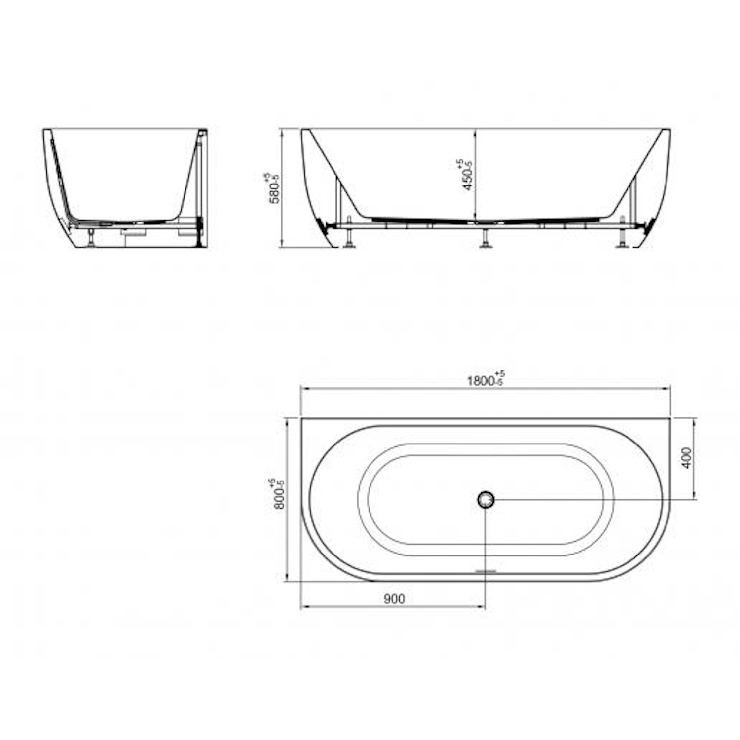 Het bad is 180 cm lang en 80 cm breed. Daarnaast is het bad vanaf de vloer 58 cm hoog. Het bad is gemaakt van acryl en is uitgevoerd in een glans witte kleur.