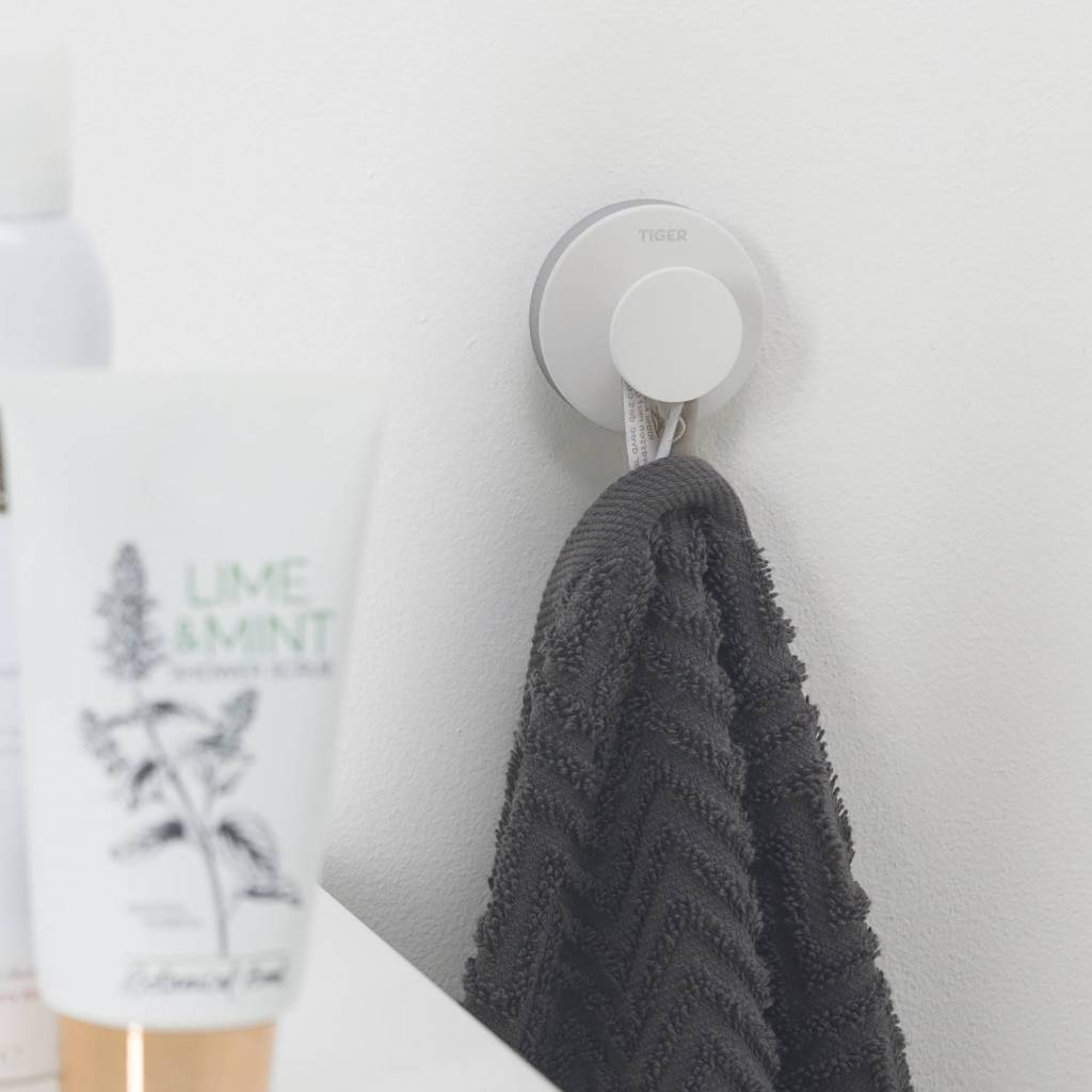 De haak groot is tevens geschikt voor montage met TigerFix type 1, waarmee accessoires snel en eenvoudig op een gladde, harde ondergrond te bevestigen zijn door middel van een gepatenteerd lijmsysteem. Boren is niet noodzakelijk en de accessoires zijn eenvoudig te verwijderen zonder dat er resten op de ondergrond achterblijven. TigerFix is los verkrijgbaar."