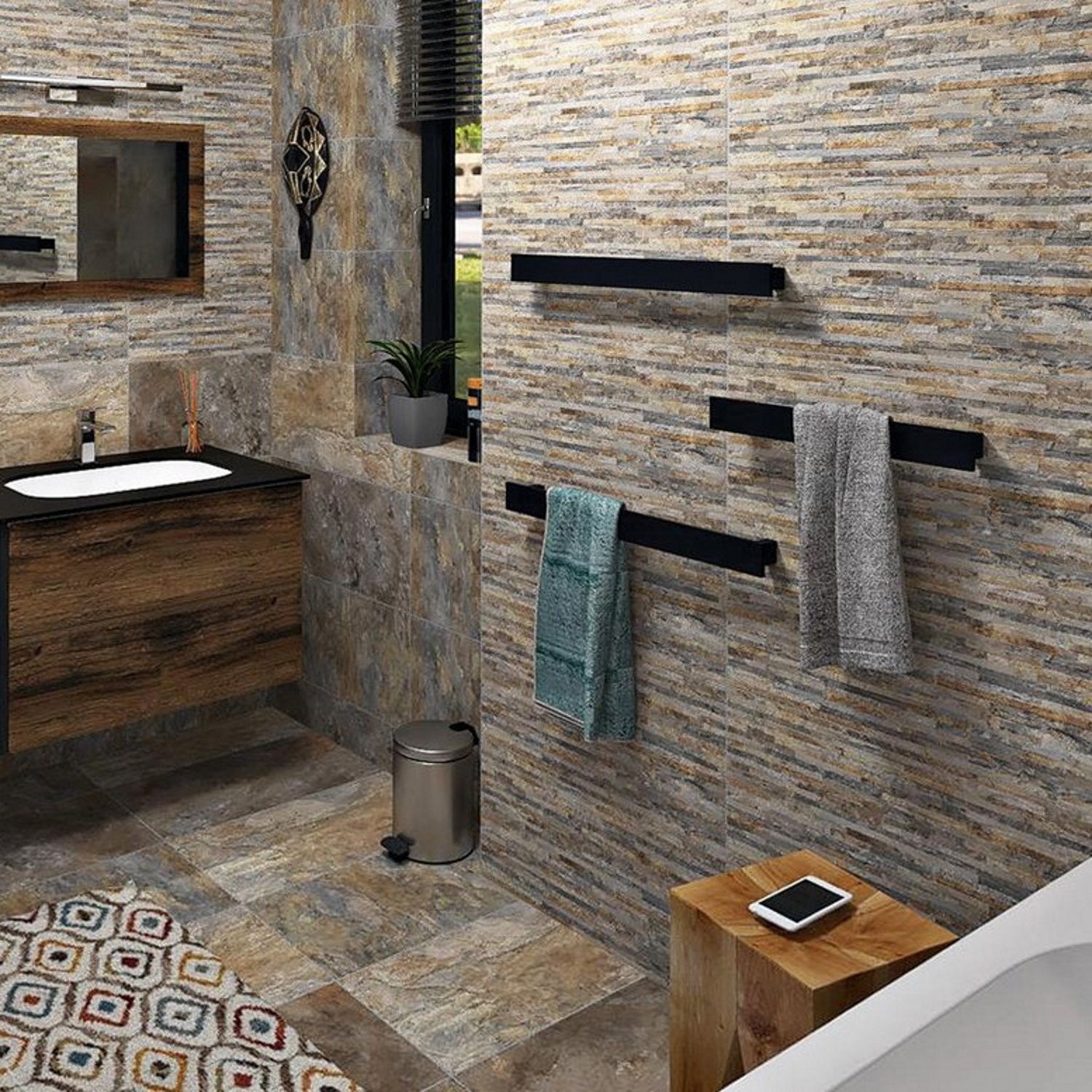 Combineer deze handdoekhouder met dezelfde houder in verschillende maten, om zo meer dynamiek in uw badkamer te creëren.