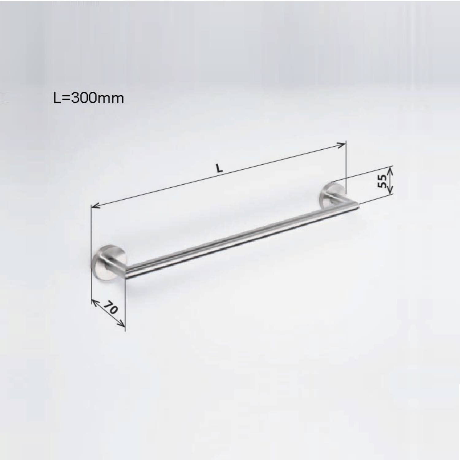 Het product is gemaakt van roestvrij staal en afgewerkt in een geborsteld rvs kleur. Het betreft een handdoekhouder die aan de muur bevestigd moet worden. De H.O.H. maat daarvoor is 30 cm.