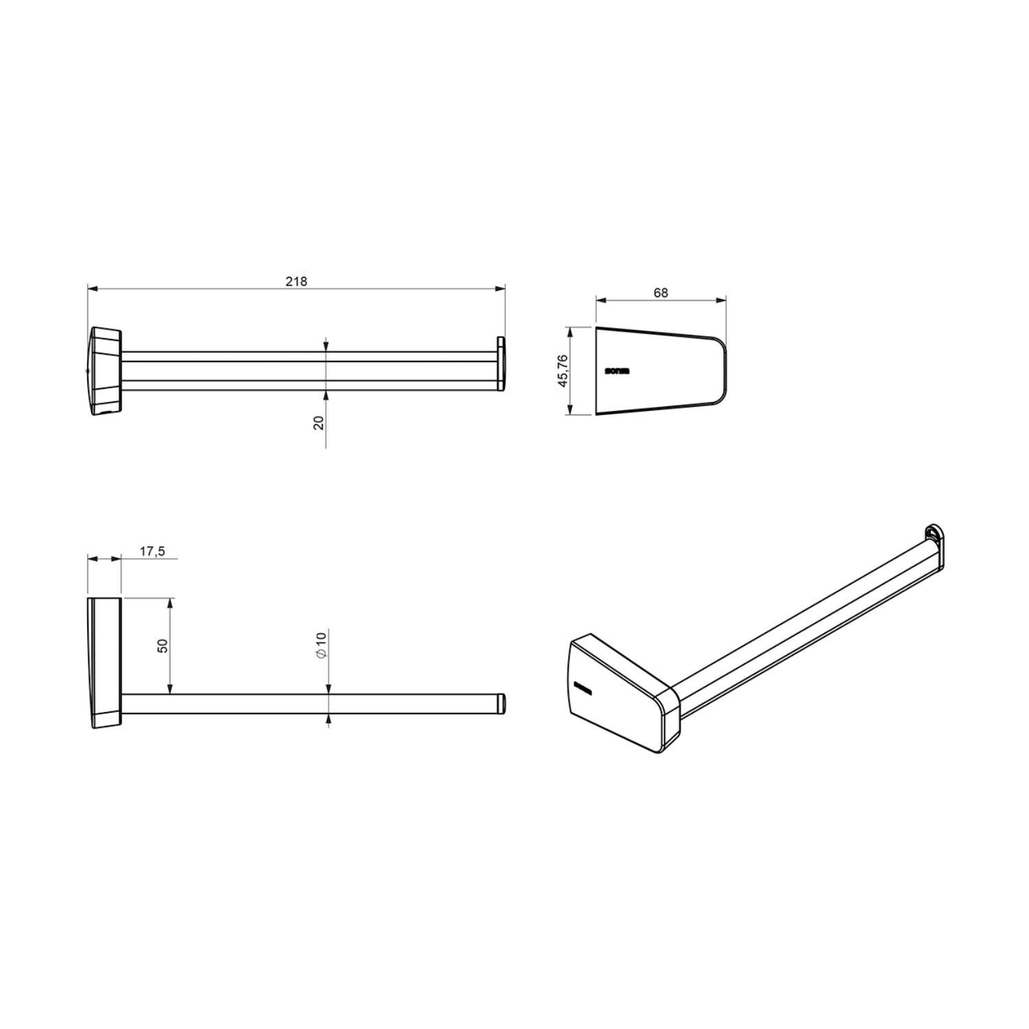Handdoekhouder Sapho Zen Chrom Hangend 32.2 cm Chroom