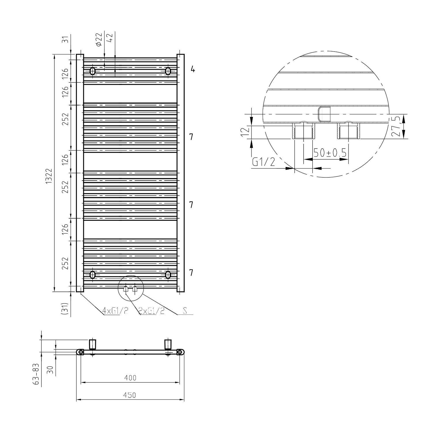 Deze mooie designradiator van serie Direct kan door zijn eenvoudige design geplaatst worden in iedere gewenste ruimte. Met het ingetogen ontwerp is de handdoekradiator elegant en stijlvol. De breedte van deze radiator is 45 cm, de hoogte 132.2 cm en het vermogen bedraagt 539 Watt. U kunt deze radiator gebruiken bij een combinatie van centrale en elektrische verwarming, elektrische verwarming of centrale verwarming.