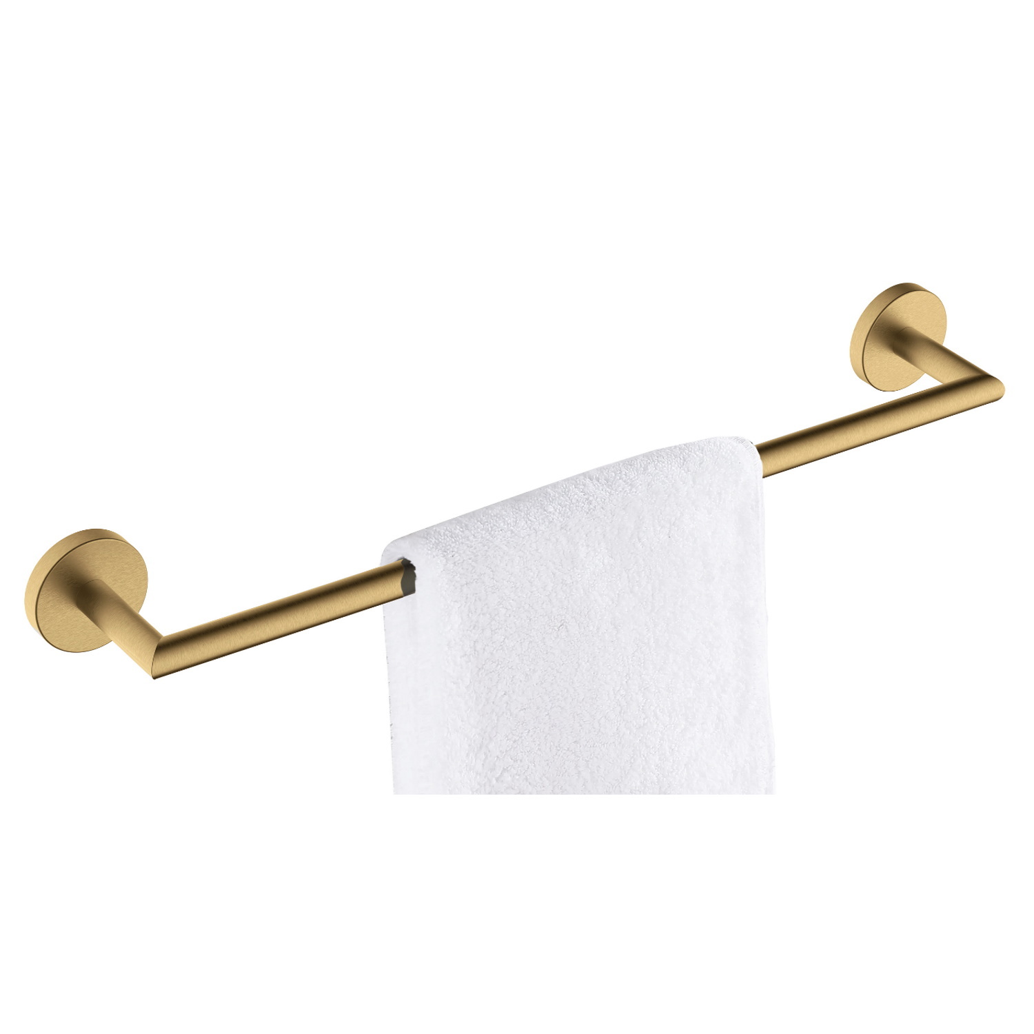 Dit Wiesbaden Alonzo handdoekrek in de kleur messing is extra breed (66 cm) waardoor je handdoek sneller zal drogen. Het rek is gemaakt van hoogwaardige materialen en geeft een trendy uitstraling aan de badkamer. Je bevestigt het rek eenvoudig aan de wand met de meegeleverde schroeven en Fischer pluggen. Combineer het handdoekrek met andere accessoires uit de Alonzo serie en maak één geheel van je badkamer of toilet.