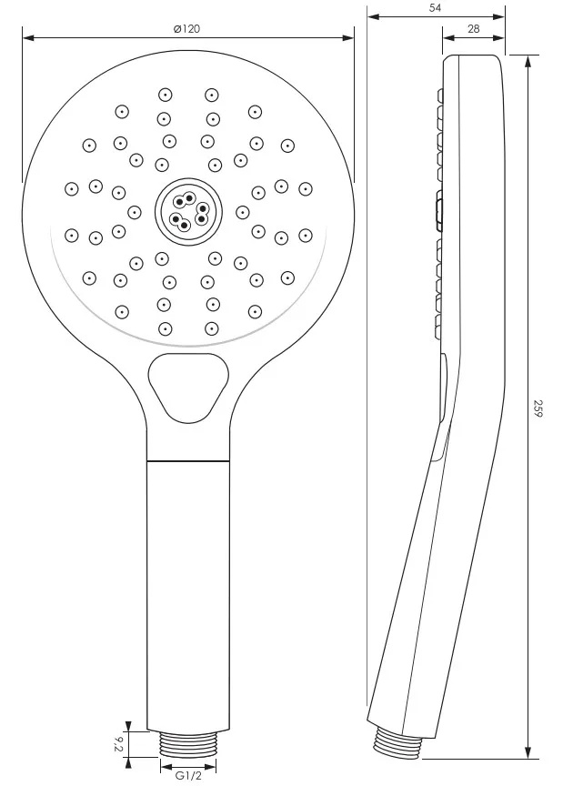De handdouche heeft 3 standen. Met de drukknop op de handdouche switcht u eenvoudig tussen deze verschillende straalsoorten. De diameter van de ronde handdouche is ? 12,20 cm.