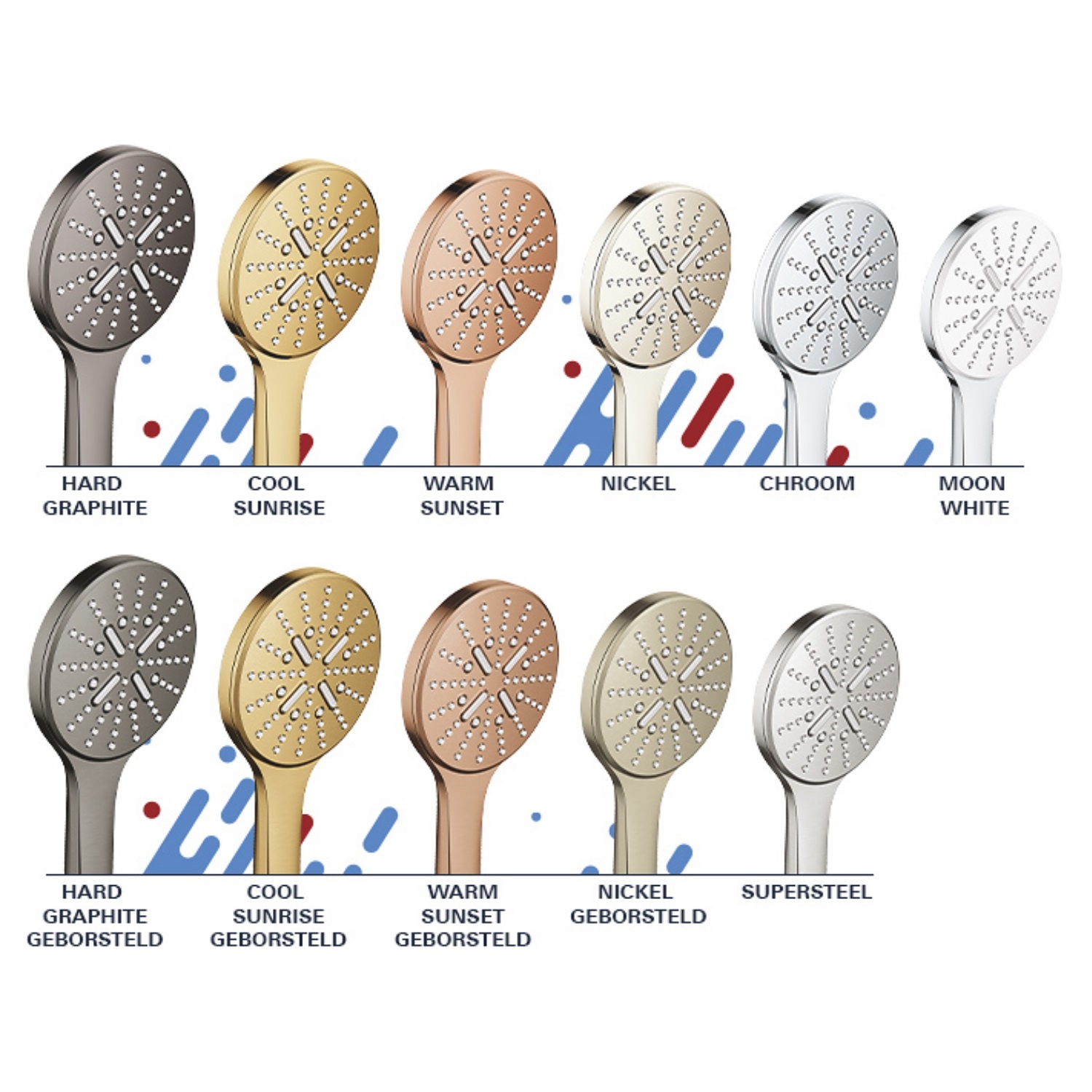 Zodra u het water uitzet zorgt Grohe DripStop ervoor dat de Rain Spray en Jet Spray bijna niet zullen nadruppelen. En dankzij Grohe DreamSpray is de stroom uit elk sproeigaatje bij iedere douchestraal die u kiest gelijk voor maximaal gebruiksgenot. En de SpeedClean antikalk sproeigaatjes zijn ook extra gemakkelijk schoon te maken. De sproeiplaat van deze handdouche is wit.