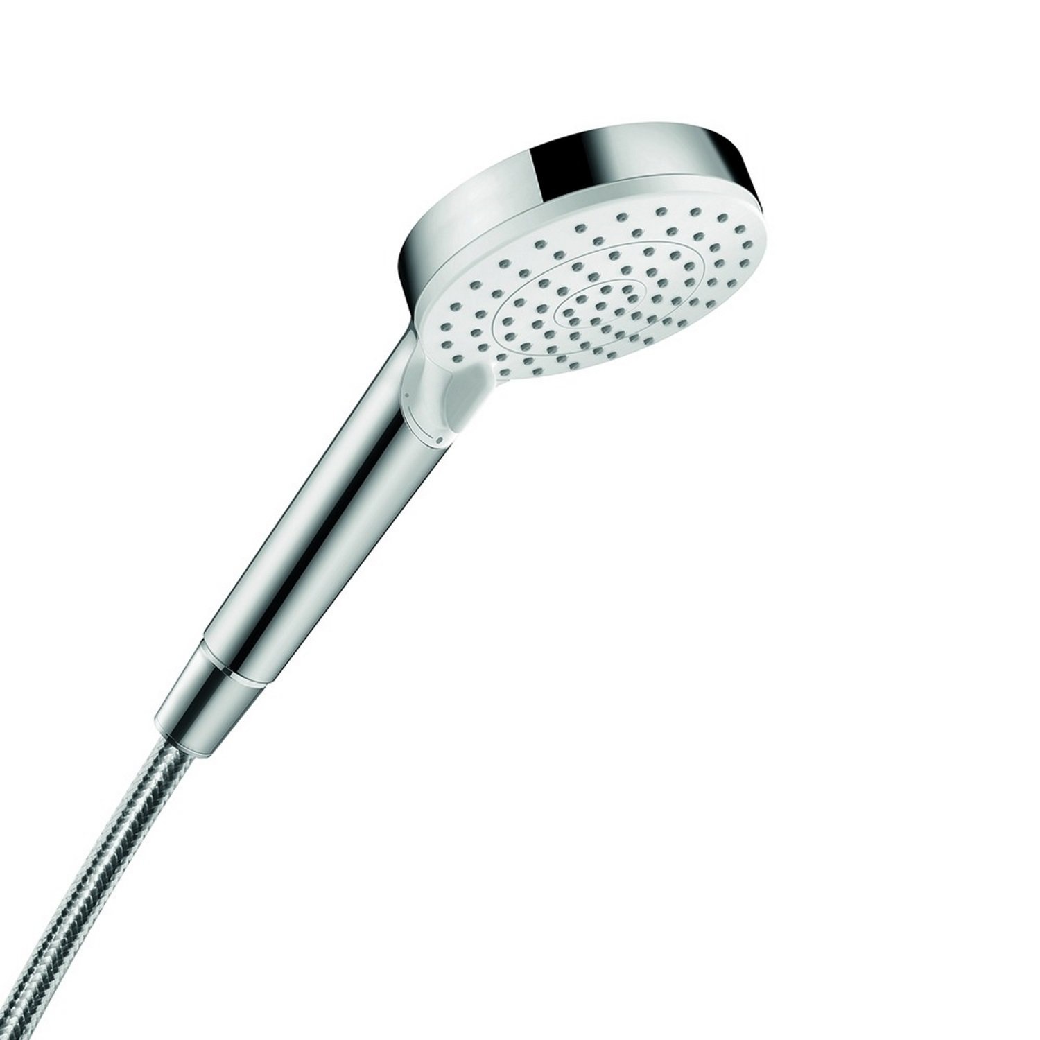 Met de handdouches van Hansgrohe heeft u keuze uit een assortiment met hoogwaardige producten. Neem bijvoorbeeld deze handdouche die beschikt over twee verschillende straalsoorten, Rain en Intense Rain. Deze stralen kunt u afwisselen door gemakkelijk aan de draaischijf op de douchekop te draaien. De handdouche is geschikt voor geisers en heeft een diameter van 10 cm. Op de aansluitslang zit een eenvoudige aansluiting van 1/2".