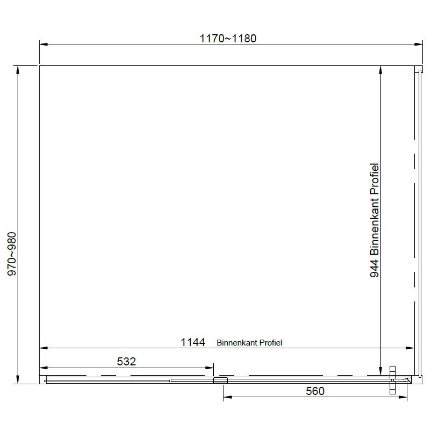De afmeting van de hoek douchecabine is 200x120x100, met een langere zijde en een iets kortere zijwand. De afmeting van de deuropening is 56 cm. De deur is gemakkelijk te openen en te sluiten door middel van de dubbelzijde metalen handgrepen. Daarnaast is de deur zowel links als rechts toe te passen.