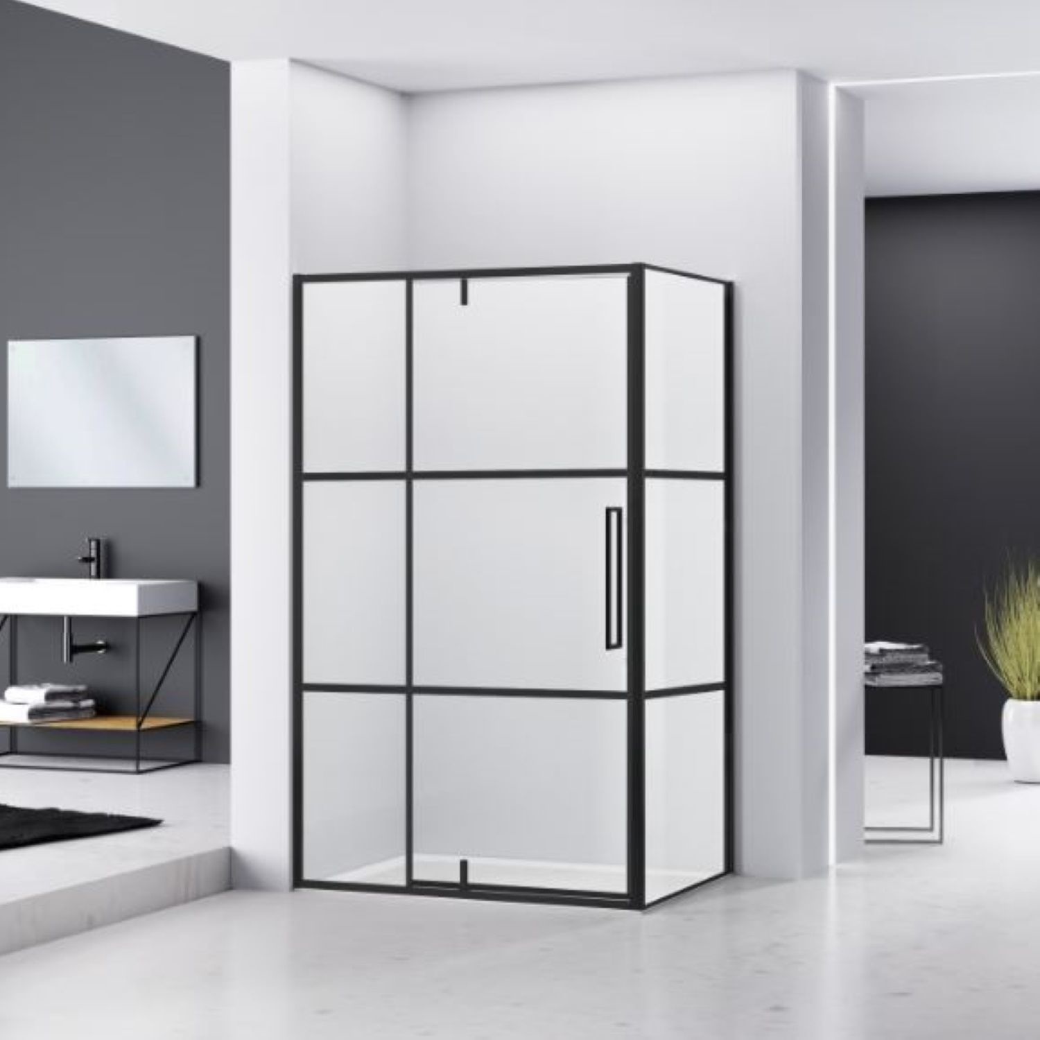 Met deze hoek-douchecabine van Van Rijn creëert u een modern en industrieel uiterlijk in uw badkamer. Met een strak design en zwarte lijnen is deze hoekcabine een aanwinst voor bijna iedere badkamer. De hoekcabine beschikt over 6 mm dik veiligheidsglas. Het glas heeft een nano antikalk behandeling gehad wanneer de hoek douchecabine wordt geleverd. Dit betekent dat vuil en vet resten zich minder snel kunnen hechten en de hoekcabine er zo lang mogelijk uit blijft zien als nieuw. Het frame van de hoekcabine is van aluminium en keramisch zwart gelakt. Doordat het frame keramisch gelakt is, heeft het een gladder oppervlak en is het minder gevoelig voor vuil.