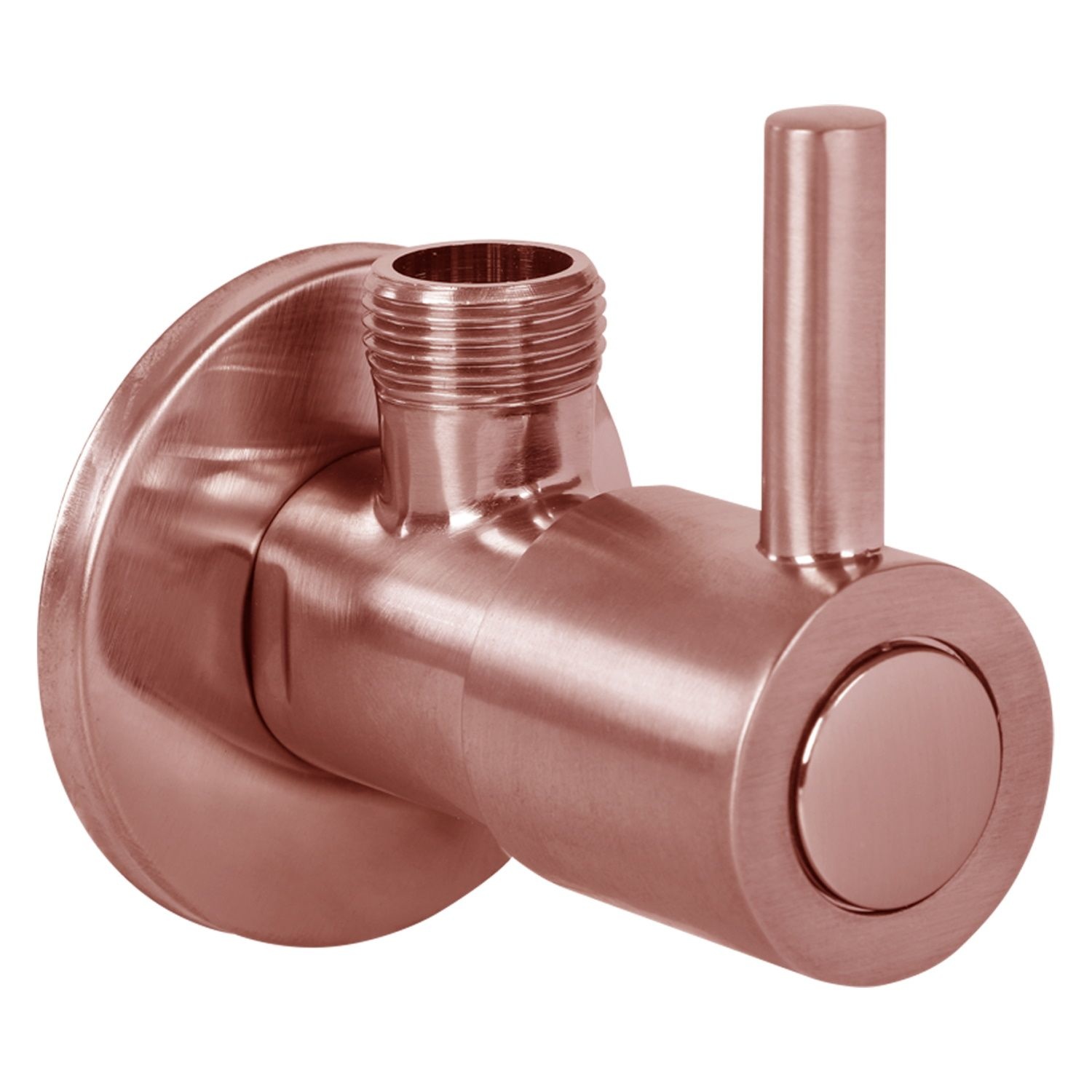 Deze hoekstopkraan is verkrijgbaar in de kleuren Chroom, Mat Chroom, Mat Zwart, Mat Goud en Rood Koper.