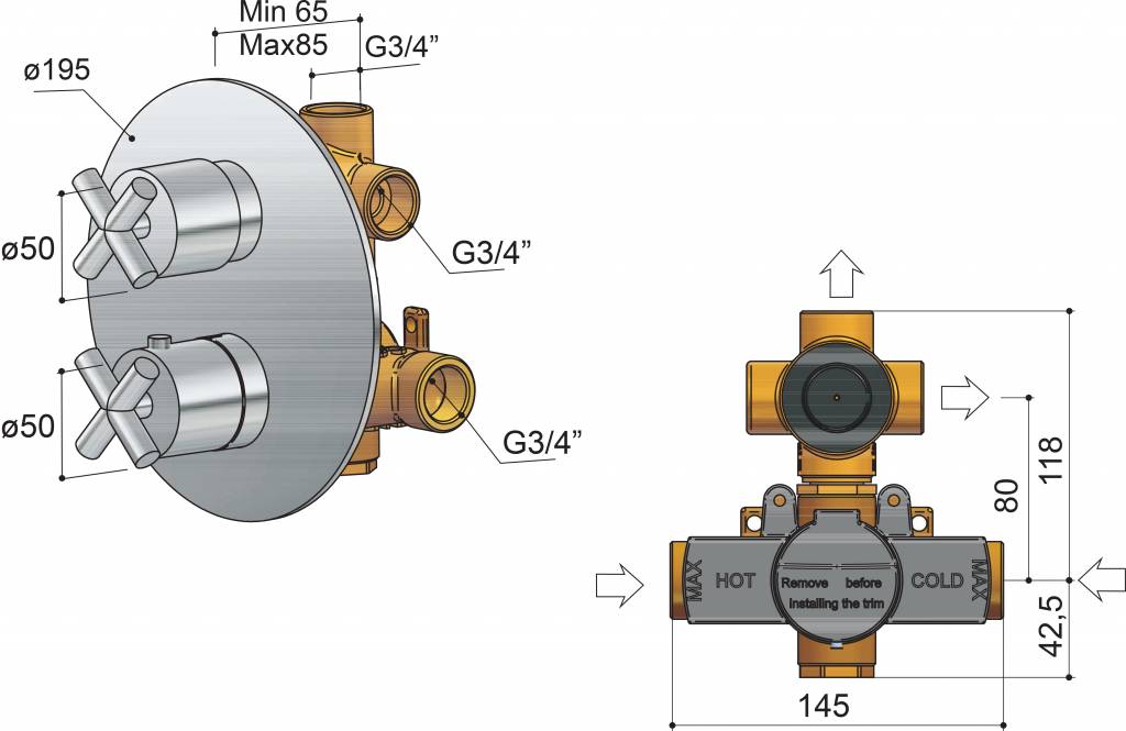 Inbouw thermostaat, Chap 009 van Hotbath, met twee weg stop omstel. Verkrijgbaar in twee uitvoeringen.