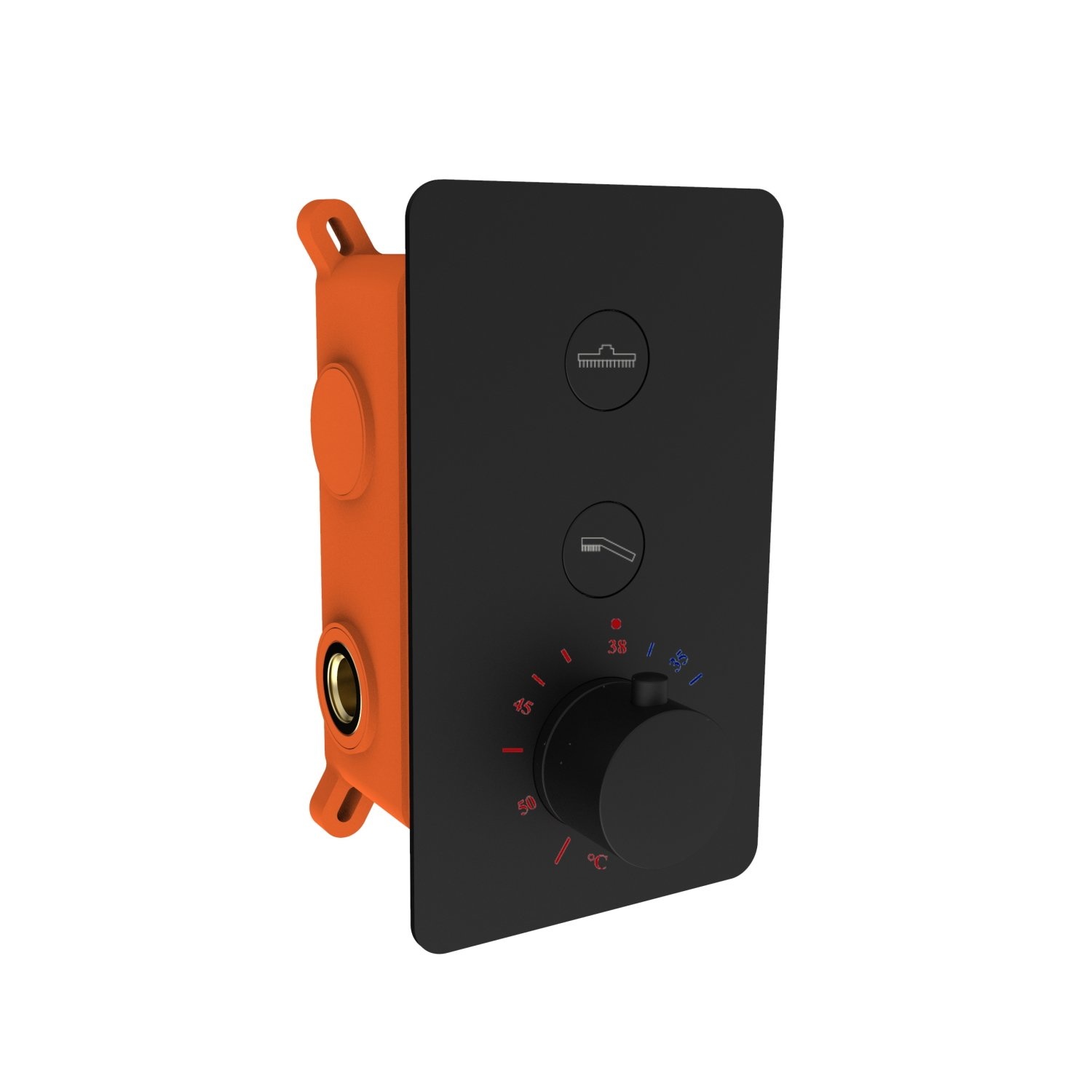 De douchekraan is voorzien van een thermostaat die ervoor zorgt dat het temperatuur gelijk blijft waar u de temperatuur op hebt gezet. Ook is deze kraan voorzien van een temperatuurbegrenzing, terugslagklep en 2 weg systeem. Deze kraan gebruikt 1/2 aansluitingen