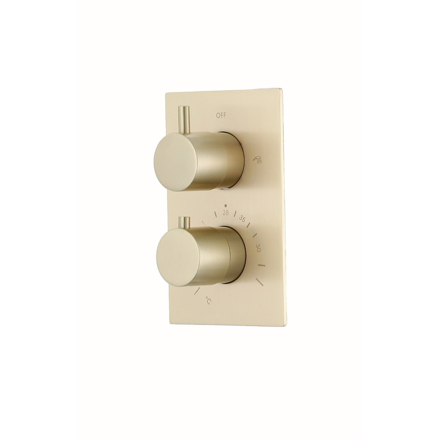 Met de Gold inbouw douchekraan van het merk Boss & Wessing haalt u absolute kwaliteit �n design in huis. De thermostaatkraan is gemaakt van geborsteld messing en kent een afwerking in de bijzondere kleur mat goud, wat deze kraan een directe blikvanger in uw doucheruimte maakt. De inbouw douchekraan wordt standaard geleverd inclusief een in- en afbouwdeel. Het afbouwdeel is voorzien van twee draaibare knoppen waarmee u eenvoudig de kracht en temperatuur van de waterstraal instelt.