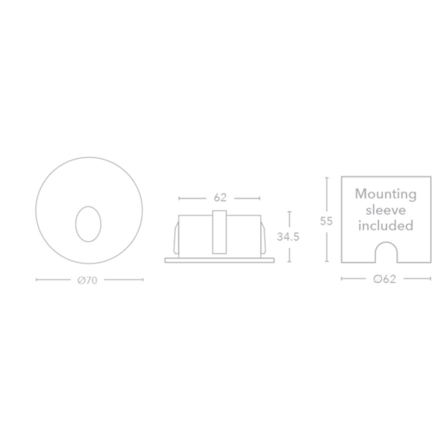 De afmeting van deze spot is 7x6x4 cm en heeft een vermogen van 1 Watt.