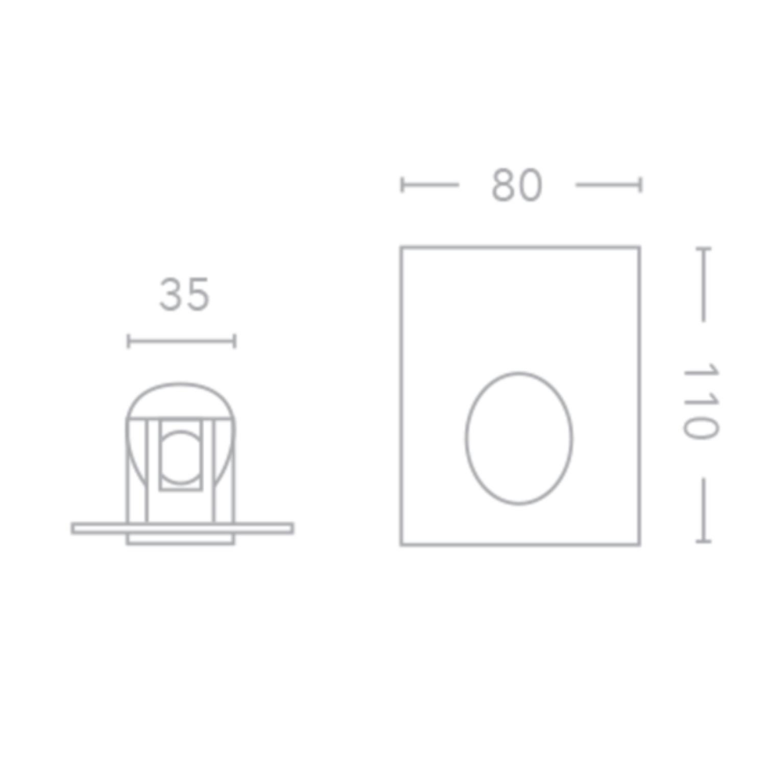 De afmeting van deze spot is 8x6x11 cm en heeft een vermogen van 1 Watt.
