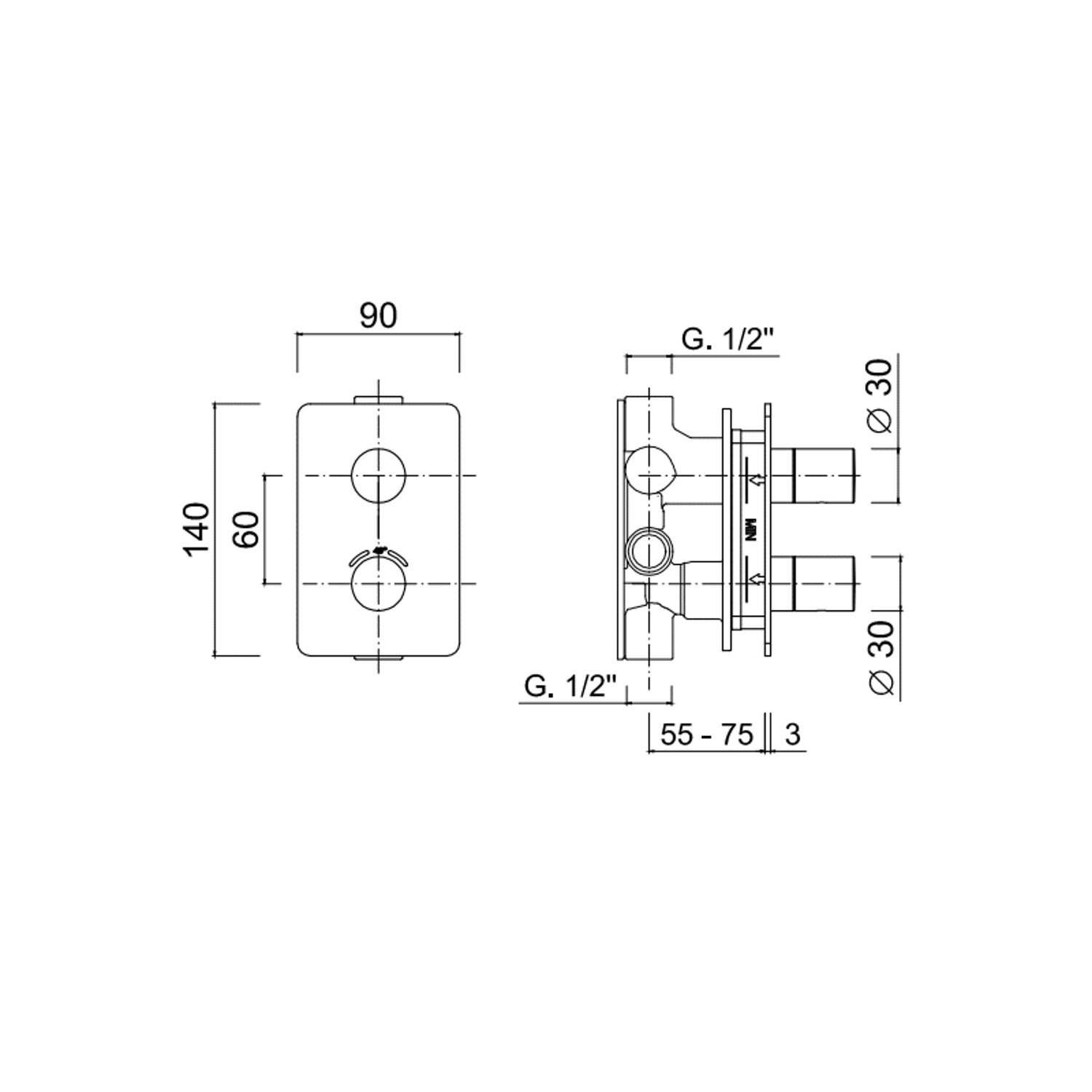 De thermostaatkraan wordt geleverd inclusief een bijpassend inbouwdeel. Houd er rekening mee dat de inbouwdiepte van de thermostatische inbouwkraan 72 mm bedraagt. De kraan is verder voorzien van een omstelknop waarmee u eenvoudig switcht tussen de regendouche en de handdouche. De handdouche is staafvormig en bevestigt u op de doucheslang met een lengte van 150 cm. De handdouche bewaart u in de standaard meegeleverde handdouchehouder.