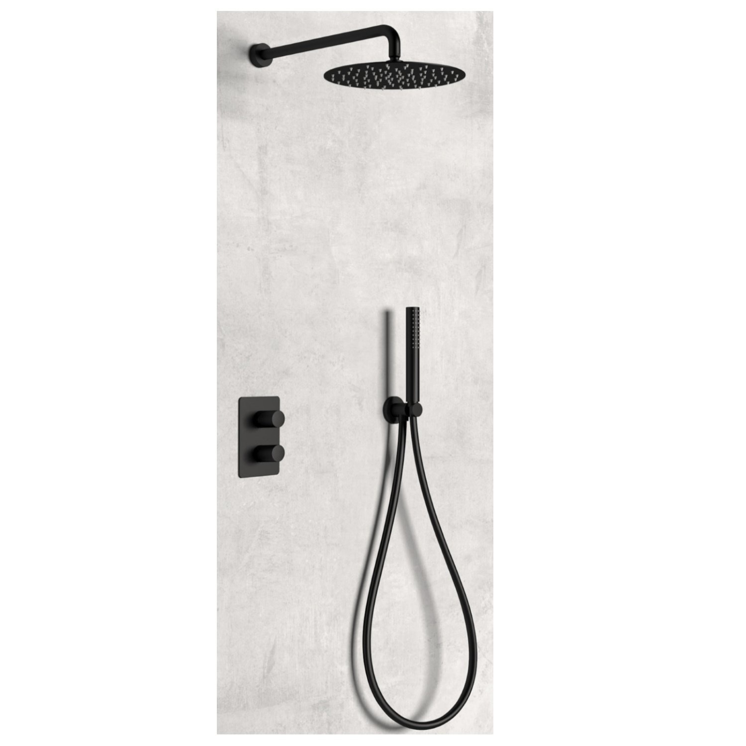 De Giulini regendoucheset is van het merk Sanimex Design en staat garant voor een hoogwaardige kwaliteit en design. De regendoucheset bestaat uit een wanduitloop, een hoofddouche, een inbouw thermostaatkraan en een handdoucheset. De elementen uit deze inbouw regendoucheset zijn afgewerkt in een mat zwarte kleur en zijn gemaakt van messing. Doordat deze artikelen van messing gemaakt zijn is de set uitstekend tegen vocht bestand en is een lange levensduur gegarandeerd.