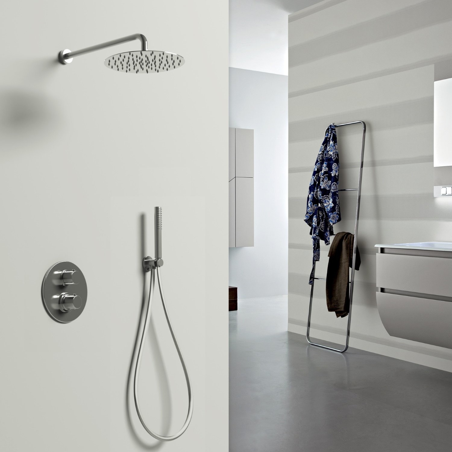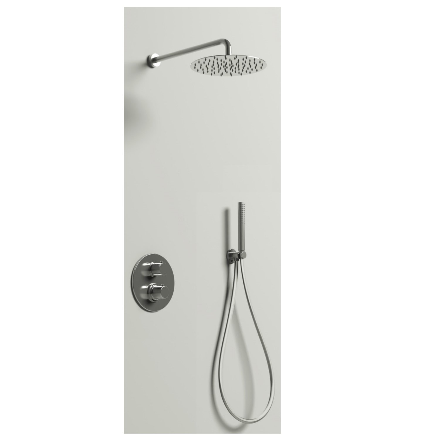 De thermostaatkraan wordt geleverd inclusief een bijpassend inbouwdeel. Houd er rekening mee dat de inbouwdiepte van de thermostatische inbouwkraan 60 mm bedraagt. De kraan is verder voorzien van een omstelknop waarmee u eenvoudig switcht tussen de regendouche en de handdouche. De handdouche is staafvormig en bevestigt u op de doucheslang met een lengte van 150 cm. De handdouche bewaart u in de standaard meegeleverde handdouchehouder.