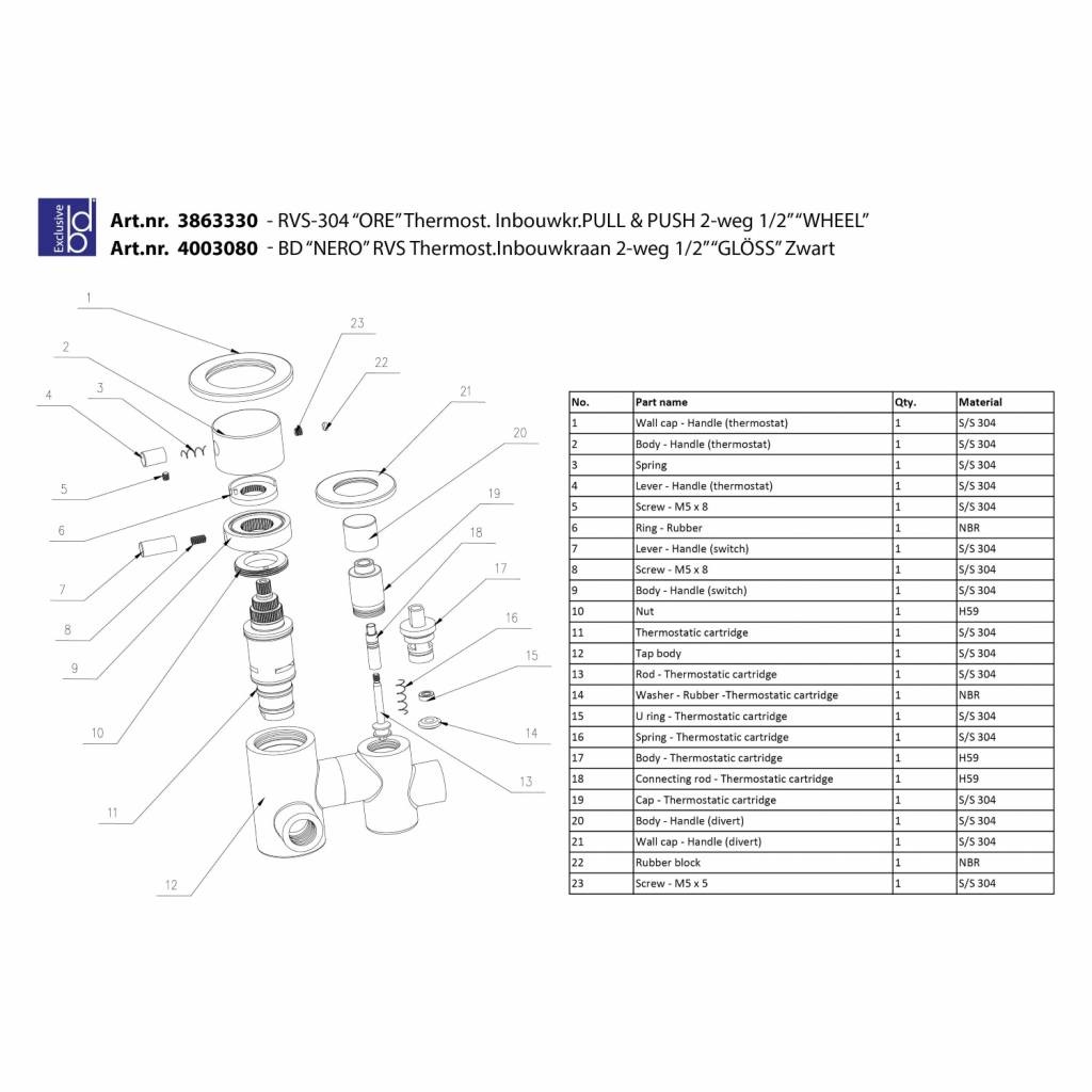 One-Pack" Inbouw-Regendoucheset "ORE-M-300" RVS-304