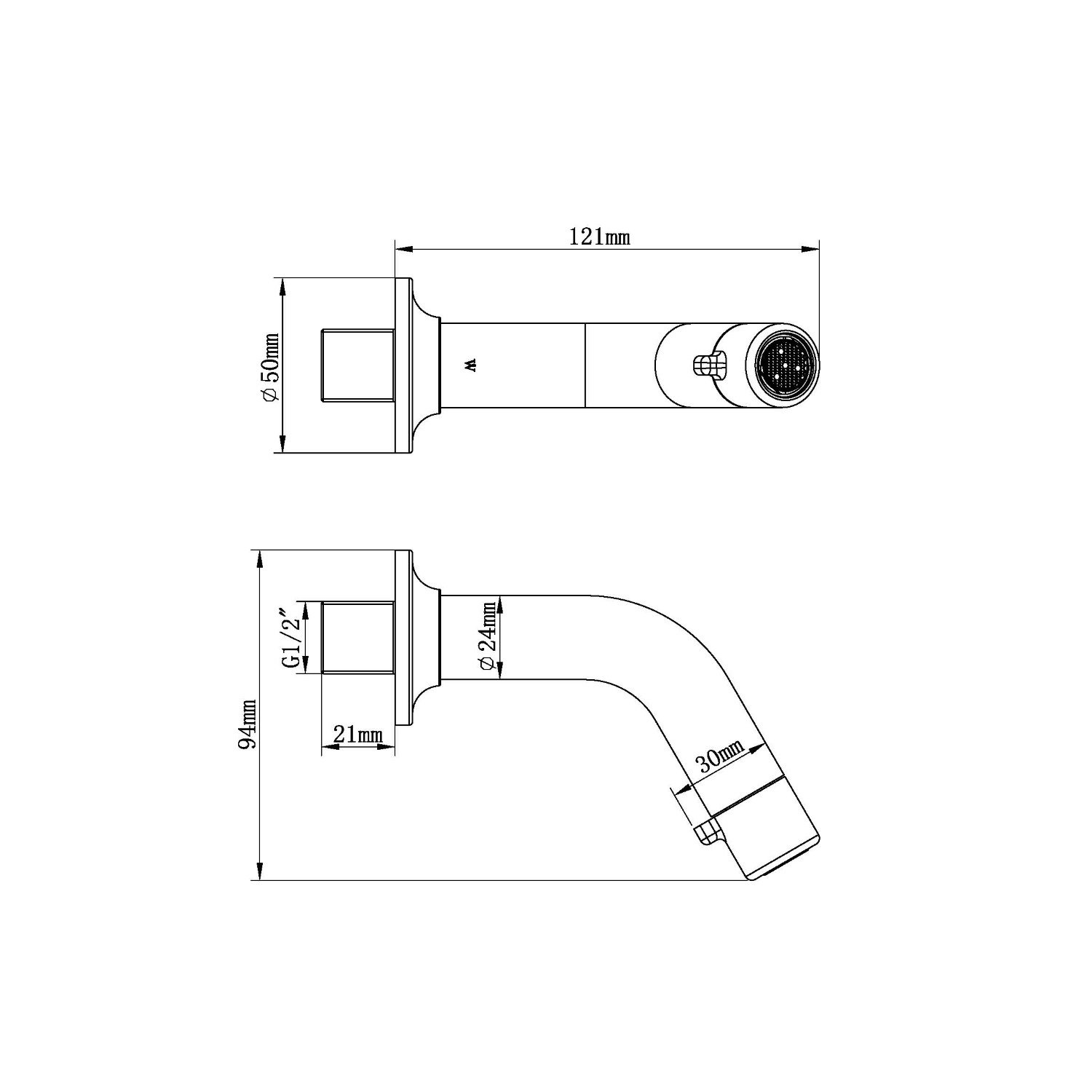 De koudwaterkraan heeft een 1/2" aansluiting.