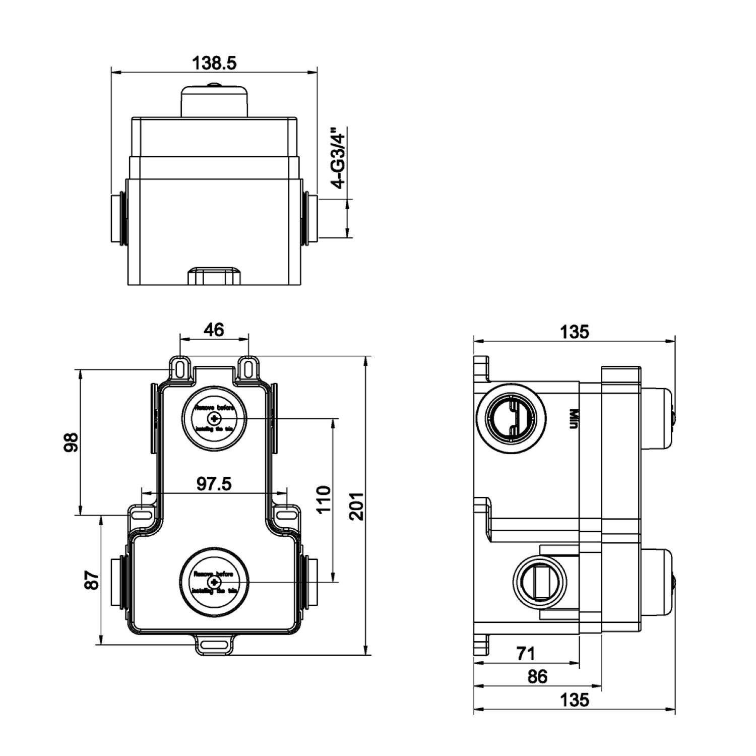 Inbouwdeel Box 2-Wegs Douchethermostaat