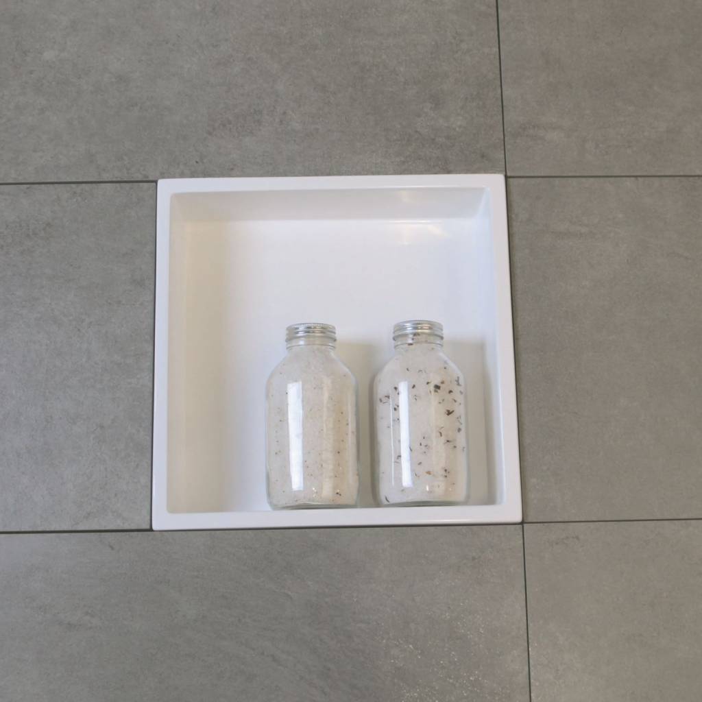 In de inbouwnis kunt u uw doucheartikelen plaatsen. U heeft dan geen rondslingerde doucheartikelen meer in uw douche, maar u kunt uw doucheartikelen mooi presenteren met bijvoorbeeld een kaarsje of een beeldje voor net dat beetje extra sfeer. De muurnis is gemaakt van Solid Surface of Stone Resin en verkrijgbaar in drie uitvoeringen en drie praktische maten afgestemd op de standaard tegelmaten.
