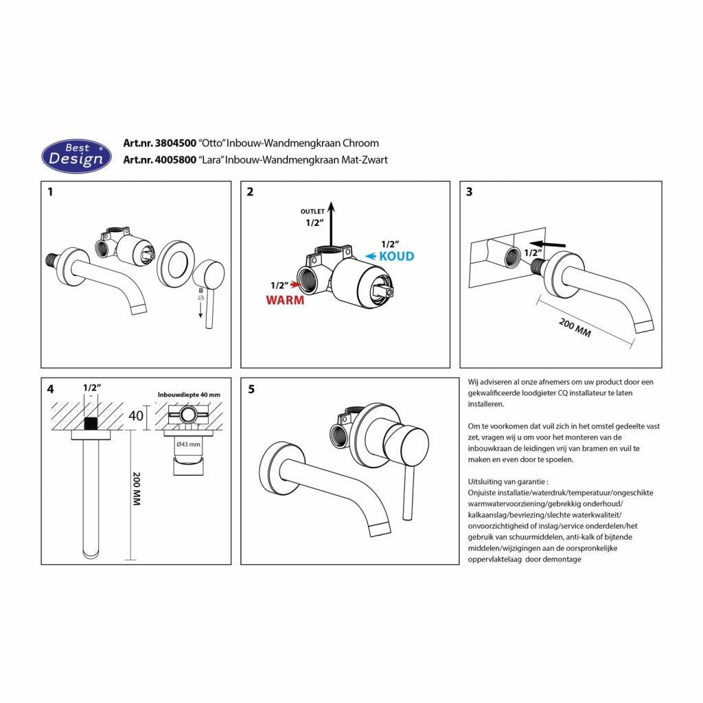 Een mooie Best Design inbouw wastafelkraan volledig in mat zwart. Voorzien van een lange uitloop van 20cm. De mengkraan is voorzien van een perlator. Aan het uiteinde van de uitloop zit een perlator weggewerkt in het model. Een perlator is een kapje met gaatjes die zorgt dat er lucht wordt gemengd met het water. Op die manier verbruikt u minder water en is de straal minder hard.