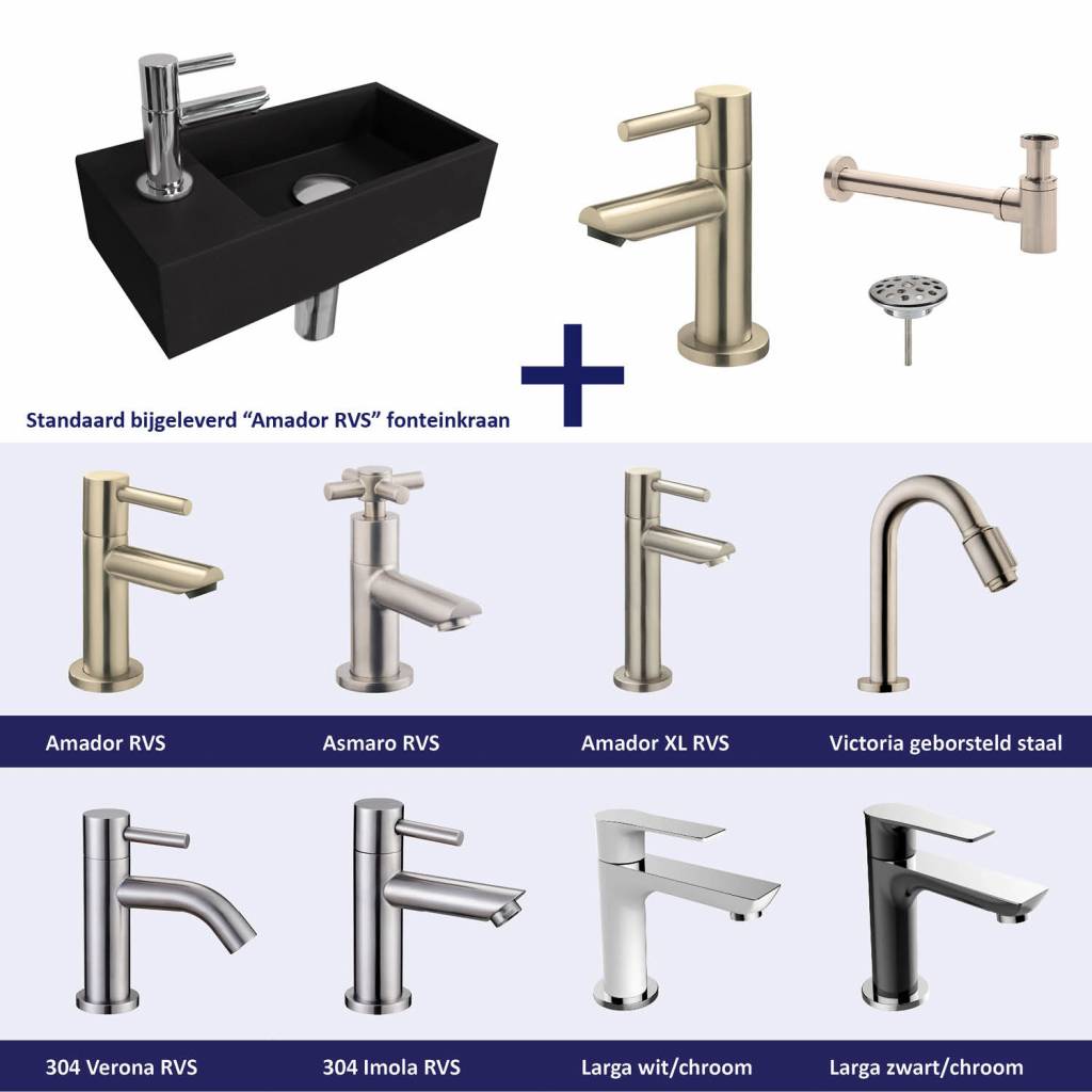 Fonteinen worden geleverd als ONE-PACK welk u een mooi prijsvoordeel oplevert. De ONE-PACK bestaat uit een fonteinkraan designsifon, niet afsluitbare fonteinplug en een bevestiging set.