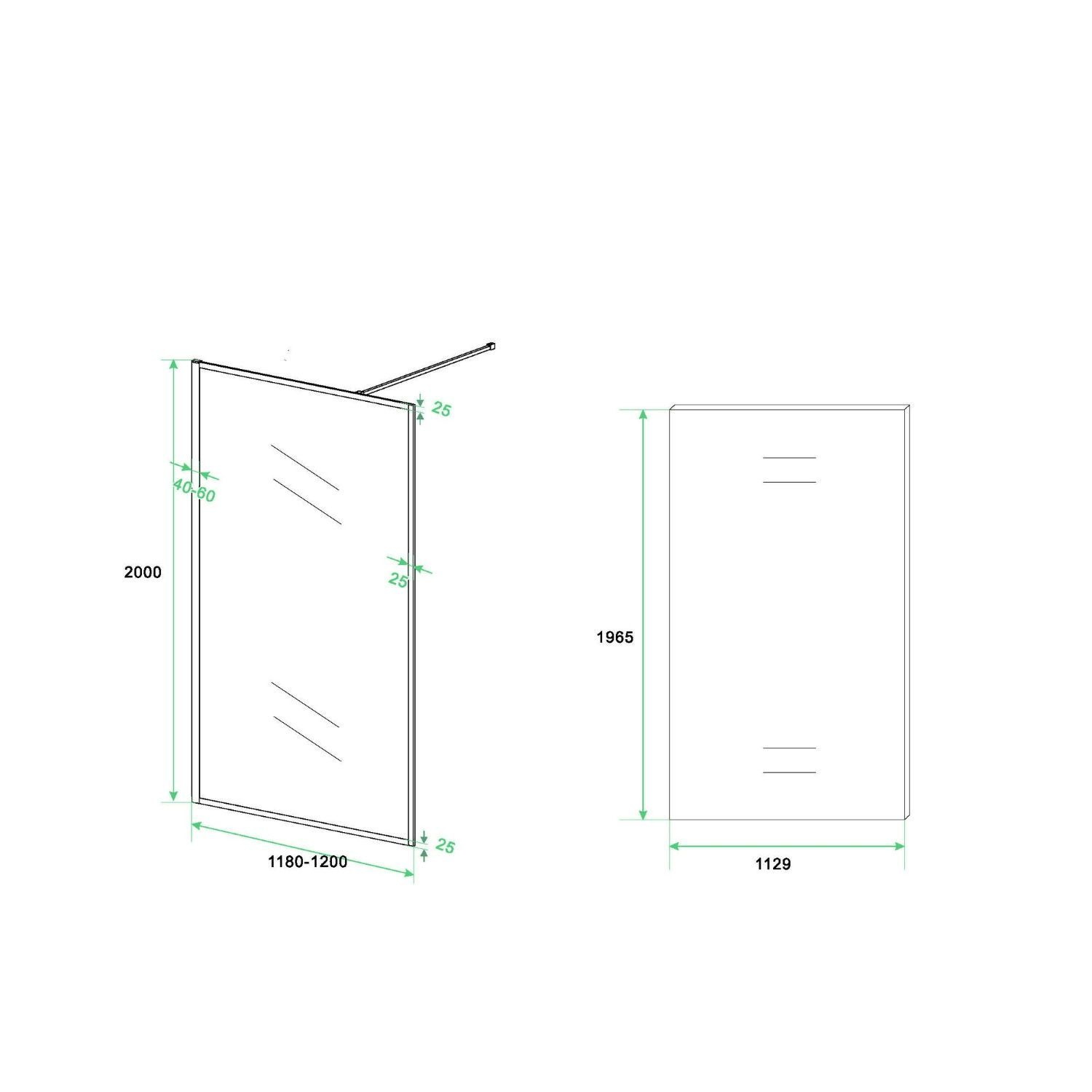 De inloopdouche heeft een breedte van 120 cm en een hoogte van 200 cm. Verder wordt de inloopdouche inclusief een mat zwarte stabilisatiestang met koppelstuk geleverd.