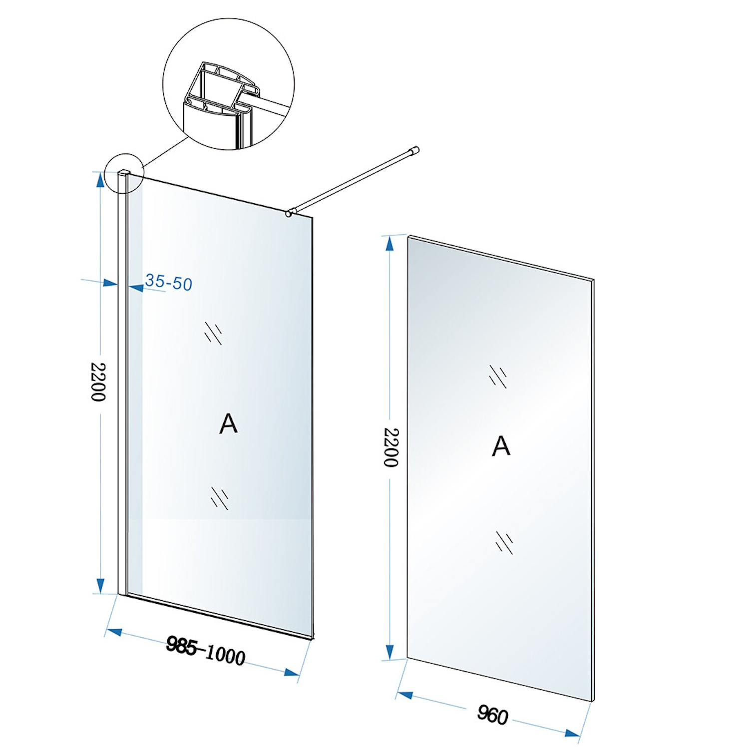 Bent u op zoek naar een inloopdouche voor in uw badkamer? Dan is deze inloopdouche van BWS uit de serie Loek echt iets voor u. De kleur van het profiel is chroom en het glas is helder met een nano coating waardoor water en kalk niet blijven hechten aan het glas. Hierdoor hoeft u hem minder vaak schoon te maken. De afmetingen zijn: 220 cm hoog, 100 cm breed en het glas is 8 mm dik. Door deze inloopdouche te plaatsen krijgt uw badkamer een moderne uitstraling.