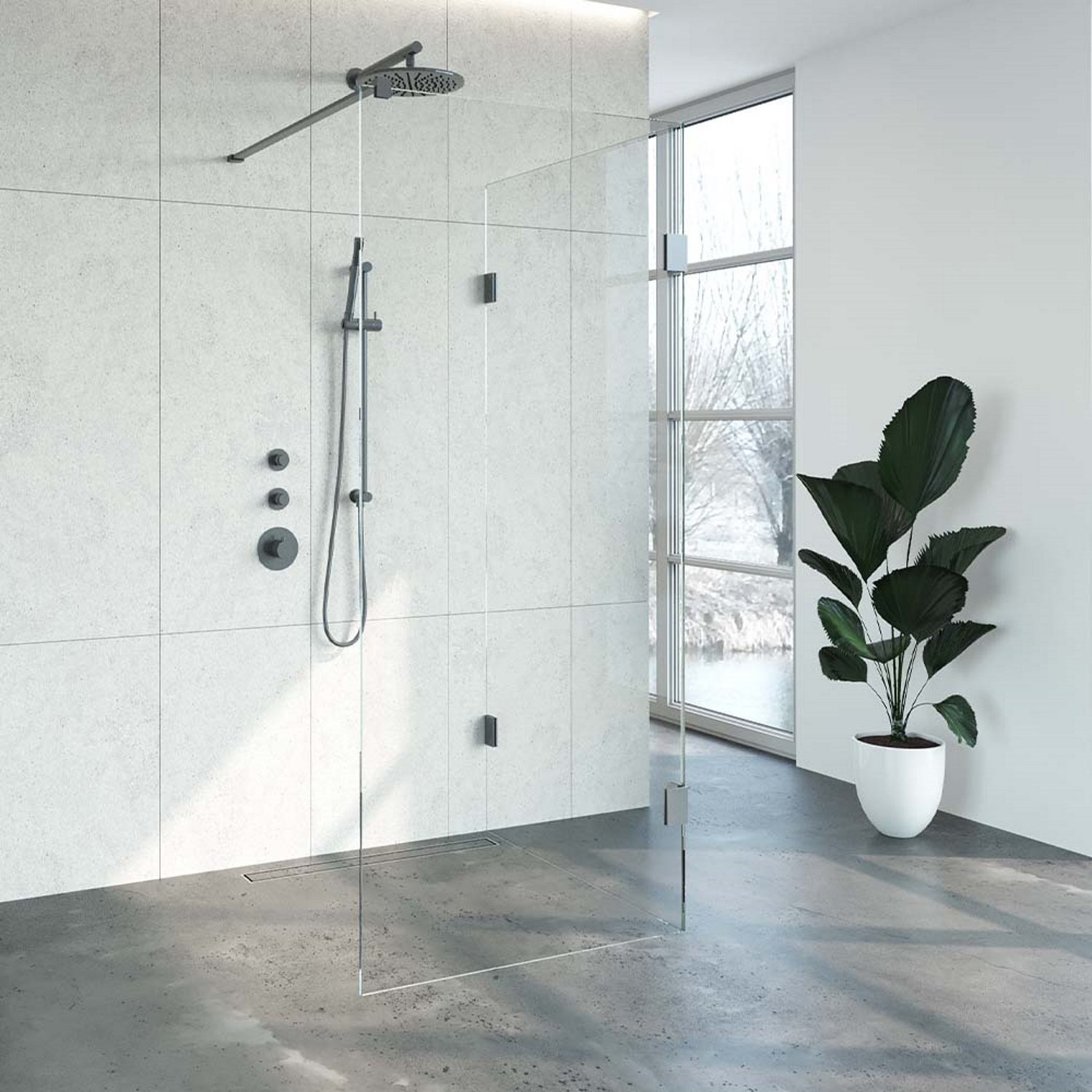Deze complete inloopdouche bestaat uit twee inloopwanden met Gunmetal beslag. Inclusief glasbehandeling. De hoogte van de inloopdouche is 200 cm. Hij is 88,3 cm breed en 97,7 cm diep. Deze inloopdouche straalt luxe uit door zijn design en kleur.
