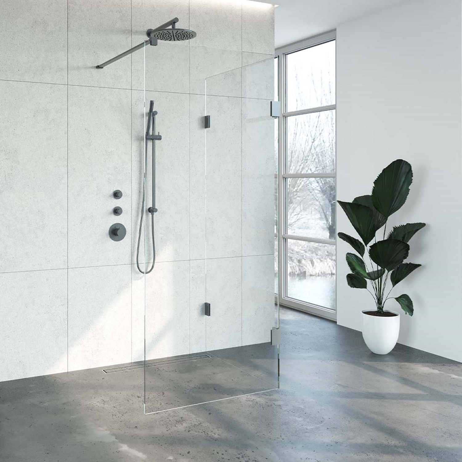 Deze complete inloopdouche bestaat uit twee inloopwanden met Gunmetal beslag. Inclusief glasbehandeling. De hoogte van de inloopdouche is 200 cm. Hij is 88,3 cm breed en 87,7 cm diep. Deze inloopdouche straalt luxe uit door zijn design en kleur.