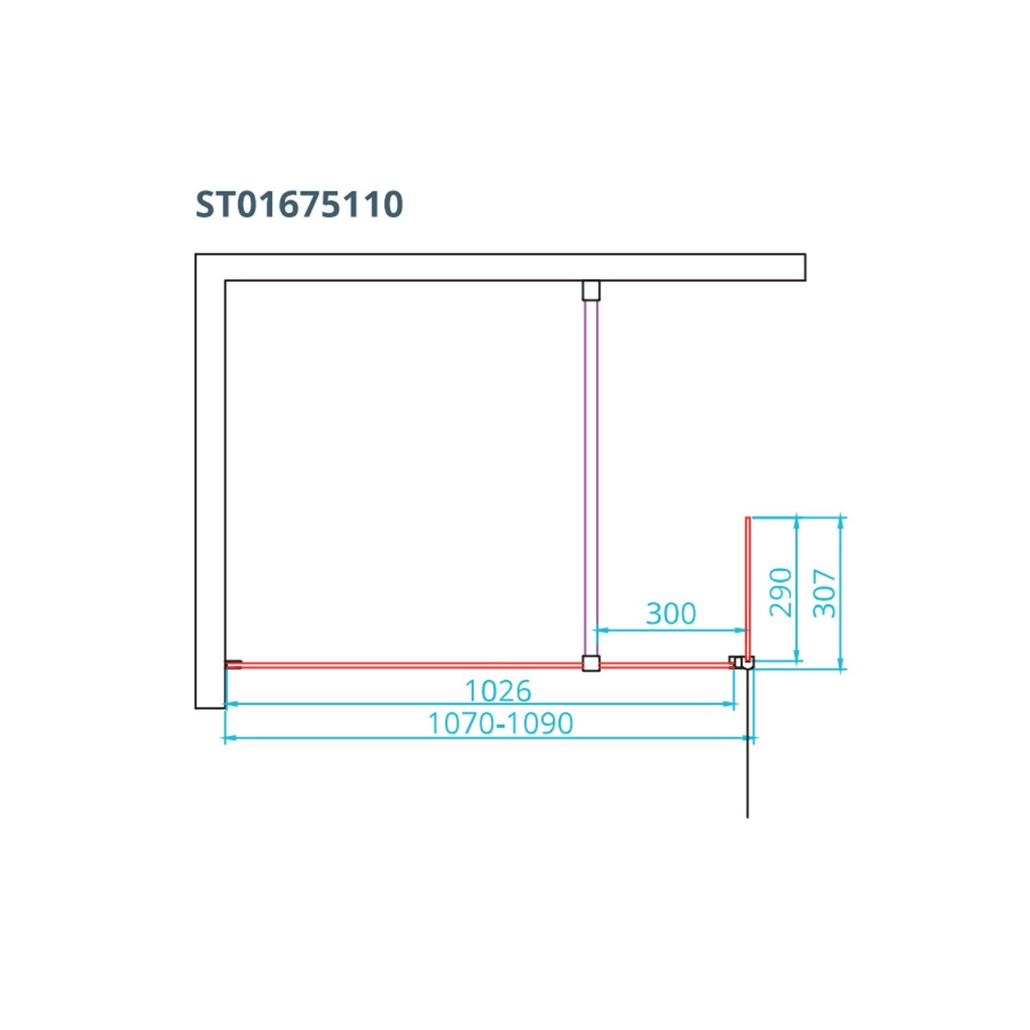 De inloopdouche heeft geen vloerbevestiging, waardoor u de inloopdouche na het plaatsen transparant kunt afkitten. De douchewand is 107 tot 109 cm breed en de zijwand is 29 cm breed. Beide wanden zijn 200 cm hoog.
