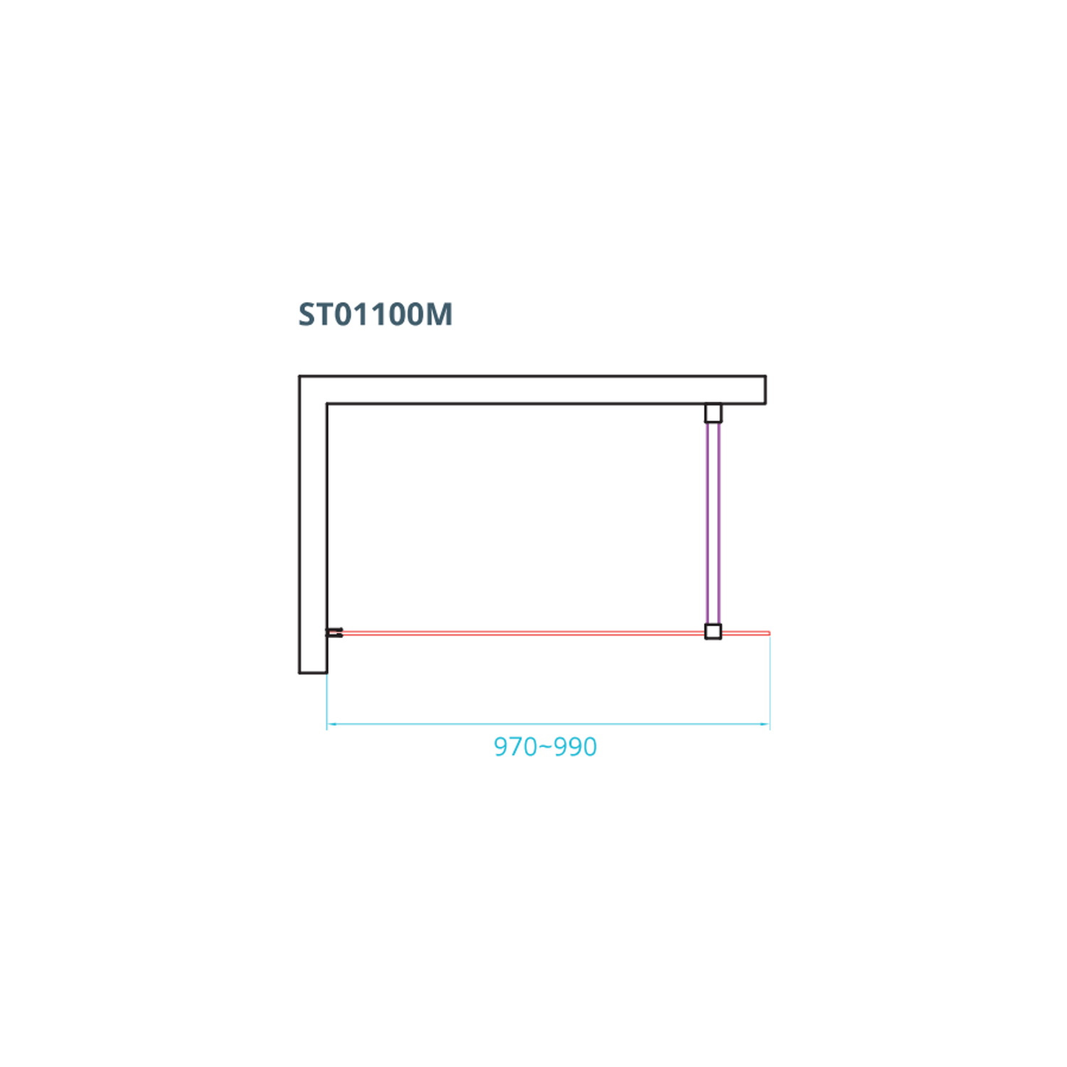 De inloopdouche is voorzien van een aluminium muurprofiel met een mat zwarte afwerking en helder glas van 8 mm met glasbehandeling. De douchewand blijft stevig staan mede dankzij de mat zwarte stabilisatiestang met een lengte van 120 cm. De stabilisatiestang is gemaakt van roestvrij staal en wordt standaard met de douchewand meegeleverd. De inloopdouche heeft geen vloerbevestiging, waardoor u de wand na het plaatsen transparant kunt afkitten. De douchewand is 97 tot 99 cm breed en 200 cm hoog.