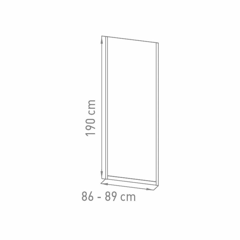 LET OP: Omdat de vaste wand ook op een douchebak te plaatsen is zijn de afmetingen 2 á 3 cm kleiner als aangegeven op de specificaties