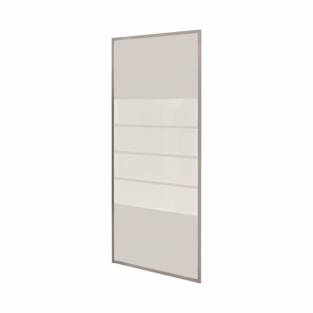 Aan de buitenzijde van de wand zit gematteerd glas in de vorm van decorstroken. De stroken geven een speels effect aan de ruimte en geeft u daarnaast ook wat privacy tijdens het douchen.