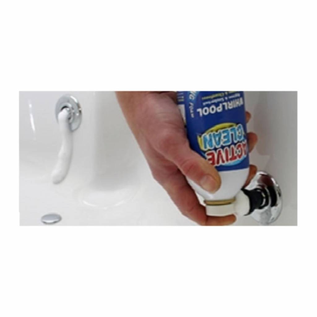 Hygiënisch actief schuim voor whirlpool systemen (watersystemen). Uit het mondstuk wordt het actieve schuim verspreidt in het systeem.