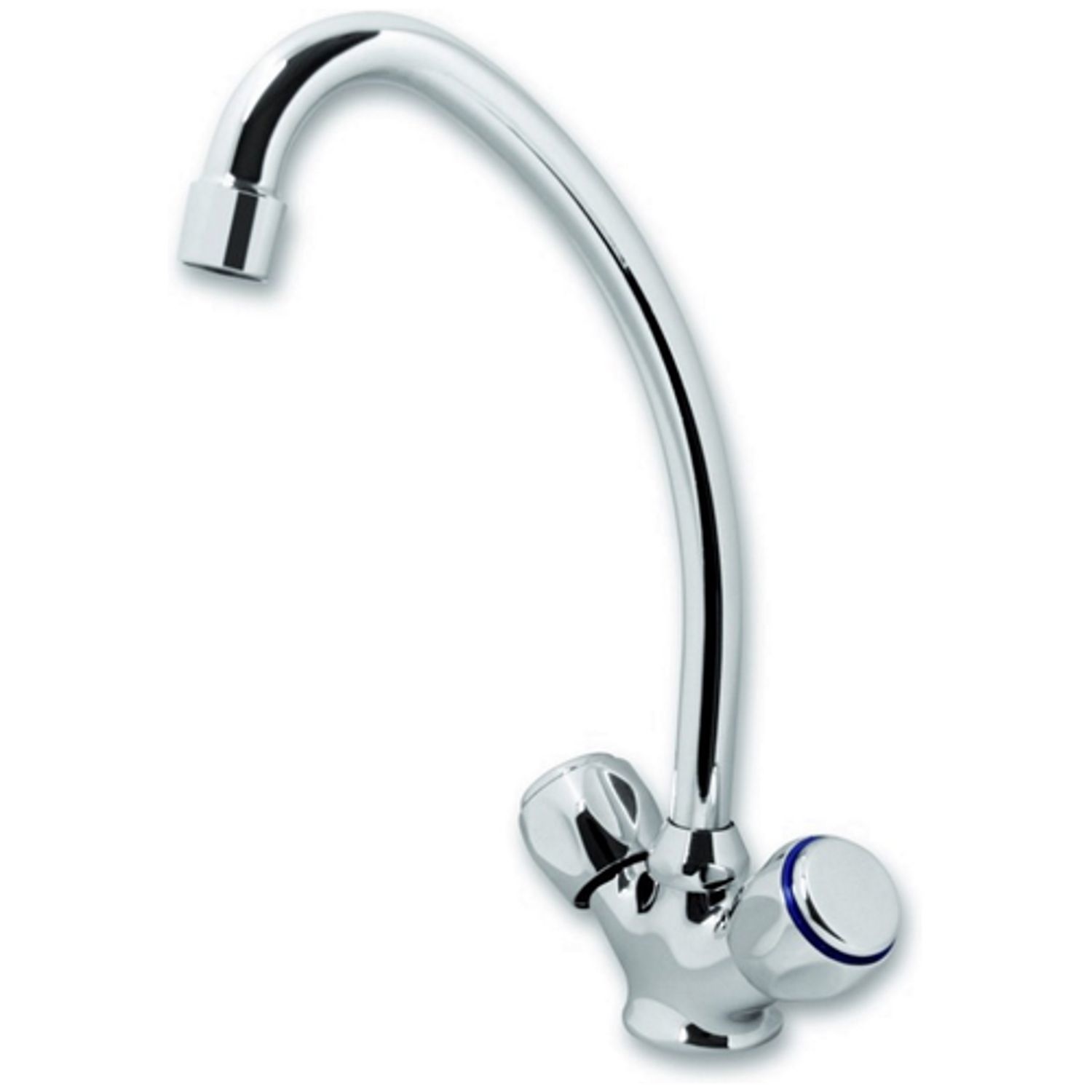 De Plieger Start keukenkraan is een echte klassieker. Zijn design is dan ook tijdloos en past in ieder interieur. Hij is 28,3 cm hoog, waarvan de uitloop 22,3 cm hoog is. Deze kraan is van messing, afgewerkt met glanzend chroom.