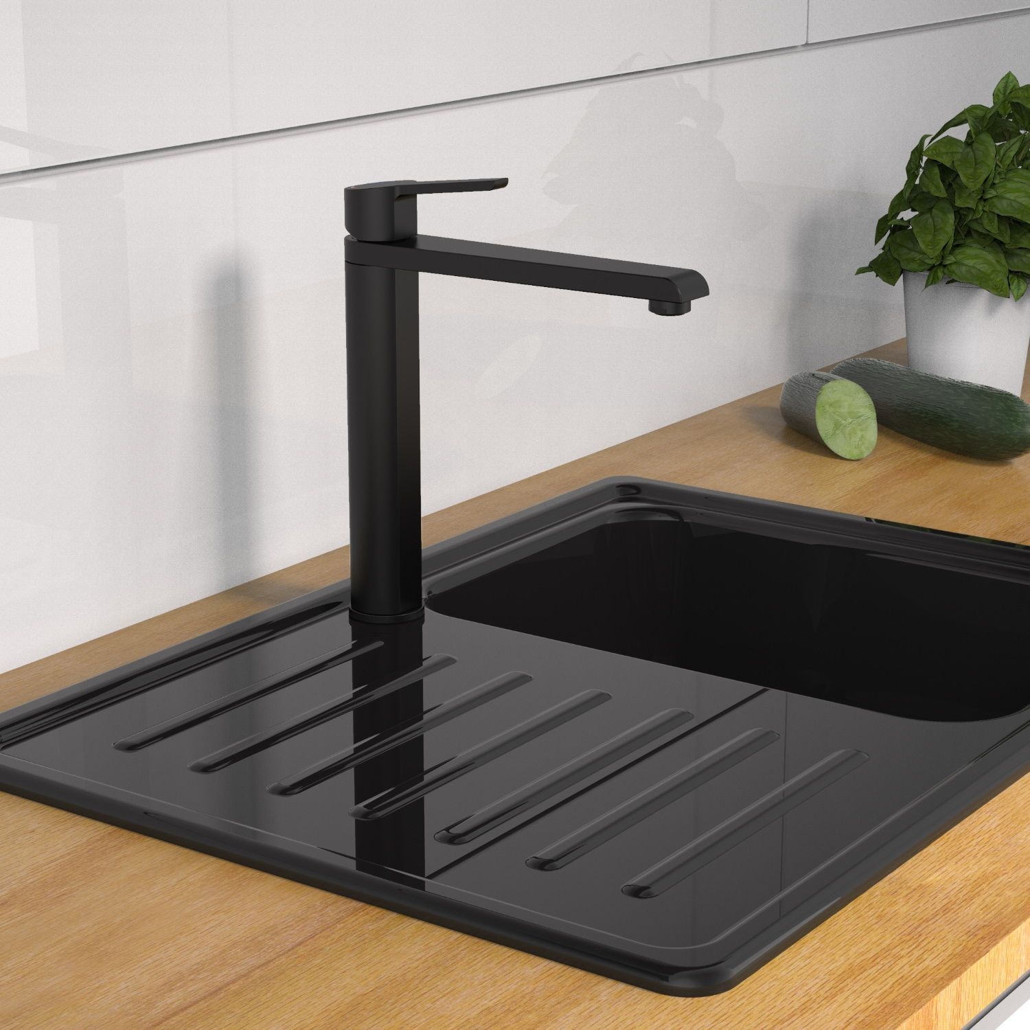 De schitterende keukenkraan van Schutte is absoluut een aanwinst voor bij u in de keuken. Hij valt op met zijn zwarte kleur en met die zwarte kleur kunt u alle kanten op. Zo kunt u bijvoorbeeld kiezen voor een industriële look, of gaan voor nog meer zwarte accenten en een strak uiterlijk creëren. De kraan is niet alleen een lust voor het oog maar bovendien ook nog eens heel gebruiksvriendelijk. Zo heeft hij een draaibare uitloop met een draaibereik van 360° waardoor u gemakkelijk bij alle hoekjes en gaten van uw gootsteen kunt.