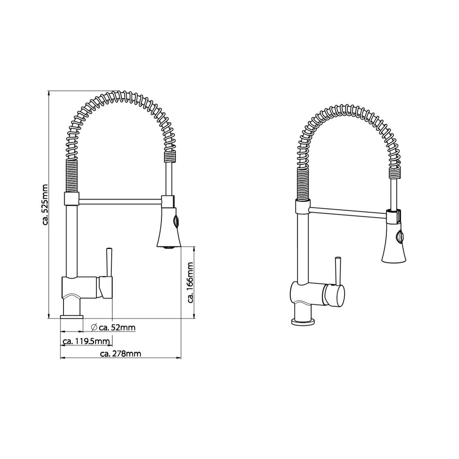 Met de zijdelingse hendel kunt u de temperatuur van het water regelen. De keukenkraan beschikt over een hoge en draaibare uitloop. De draaibare uitloop maakt het mogelijk om een dubbele vaat met water te vullen. De mengkraan bevat een ook uittrekbare sproeier waarmee u gemakkelijk de kraan in verschillende richtingen kan bewegen. De mengkraan is 27.8 cm lang, 52.5 cm hoog en heeft een diameter van 5.2 cm.
