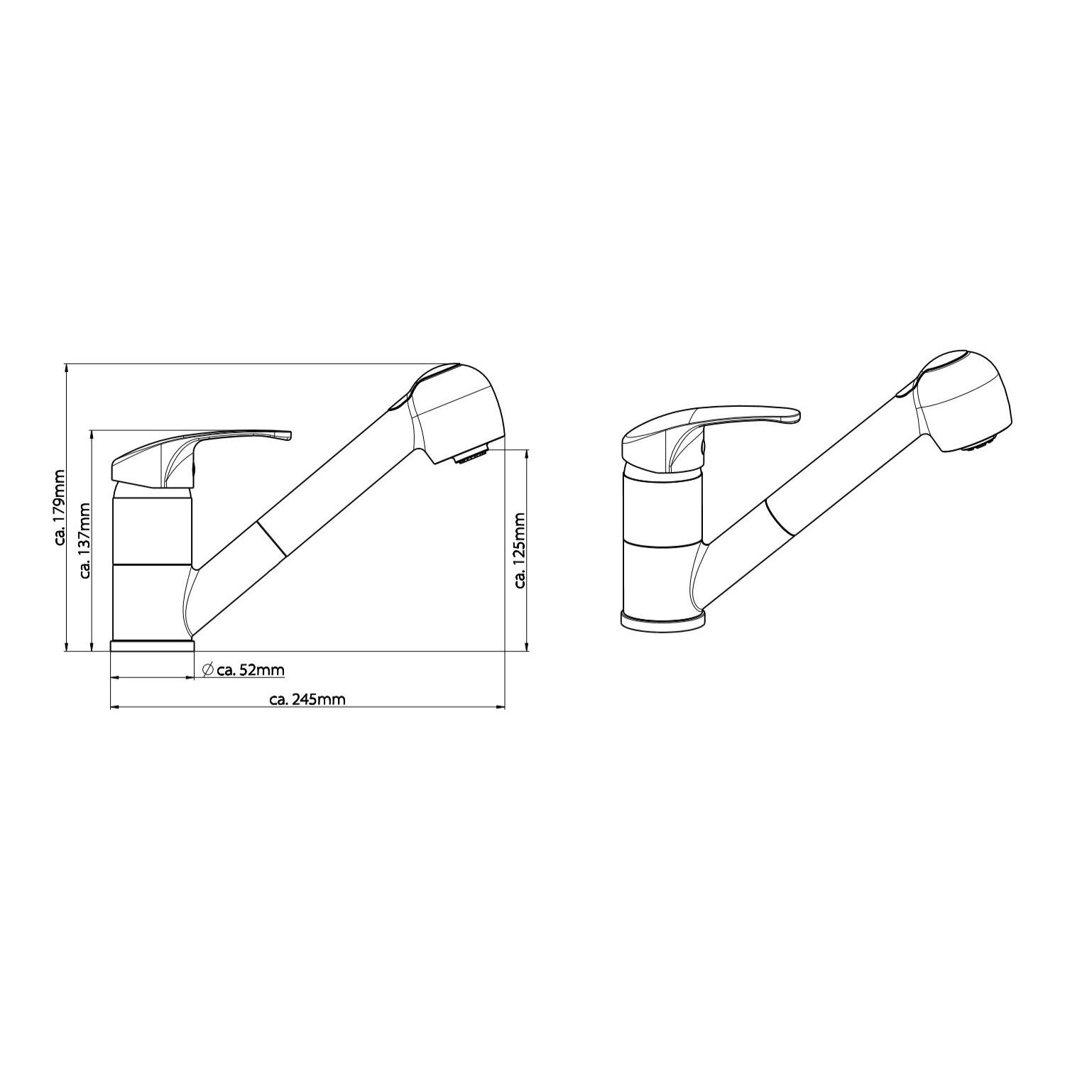 Met de hendel kunt u de temperatuur van het water regelen. De keukenkraan beschikt over een draaibare uitloop. De draaibare uitloop maakt het mogelijk om een dubbele vaat met water te vullen. De mengkraan bevat een ook uittrekbare sproeier waarmee u gemakkelijk de kraan in verschillende richtingen kan bewegen. De mengkraan is 24.5 cm lang, 17.9 cm hoog en heeft een diameter van 5.2 cm.
