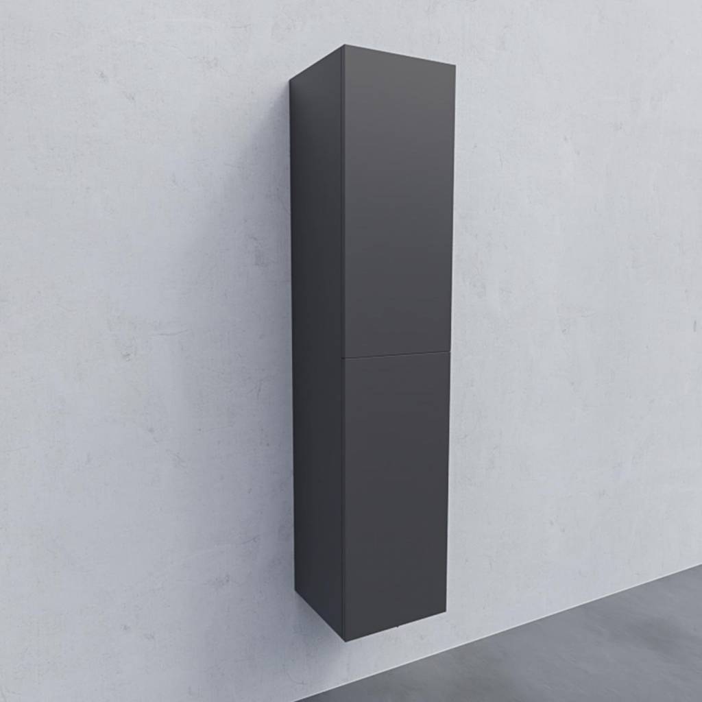 De hoge kast is gemaakt van MDF. De planken zijn gespoten in de kleuren mat wit, antraciet, wood dark brown of wood washed oak. Doordat het gespoten is, is het meubel uitstekend geschikt voor in vochtige ruimtes. De twee deuren zijn voorzien van druksluitingen en helemaal greeploos. De kast is daarnaast omkeerbaar, zo kunt u zelf kiezen of u de kast links of rechts plaatst.