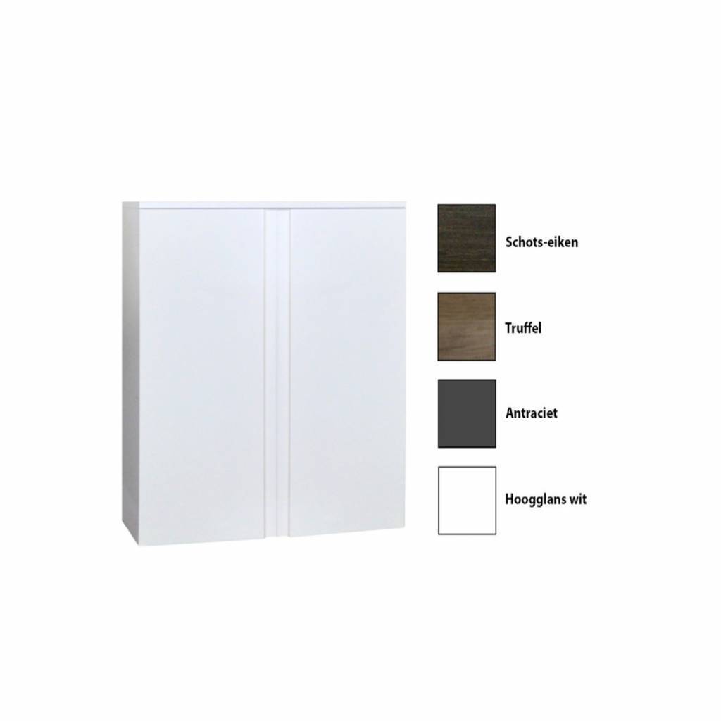 De kolomkast heeft een hoogte van 90 cm, een breedte van 67 cm en een diepte van 32 cm. De kast valt perfect te combineren met andere producten uit de Q7-serie van Sanicare. De kolomkast is afgewerkt in de kleur antraciet.