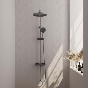 Doucheset Sanilux Rubb Inbouw Met Thermostaat, Douchekop 25 cm, Doucheslang en Handdouche Gunmetal