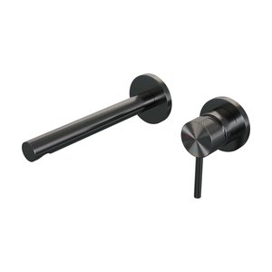 Inbouw Wastafelmengkraan Brauer Gunmetal Carving Coldstart Gebogen Uitloop Ronde Hendel Links Geborsteld Gunmetal Met Rozetten