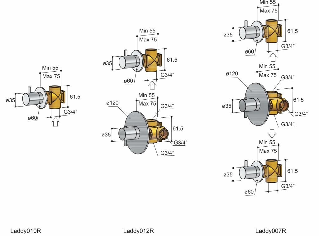 Mooie inbouw thermostaat vervaardigd uit messing en met een geborsteld nikkel of chroom afwerking. Ook verkrijgbaar met twee stopkranen als Laddy 007R. Stopkraan tevens los verkrijgbaar, Laddy 010R.