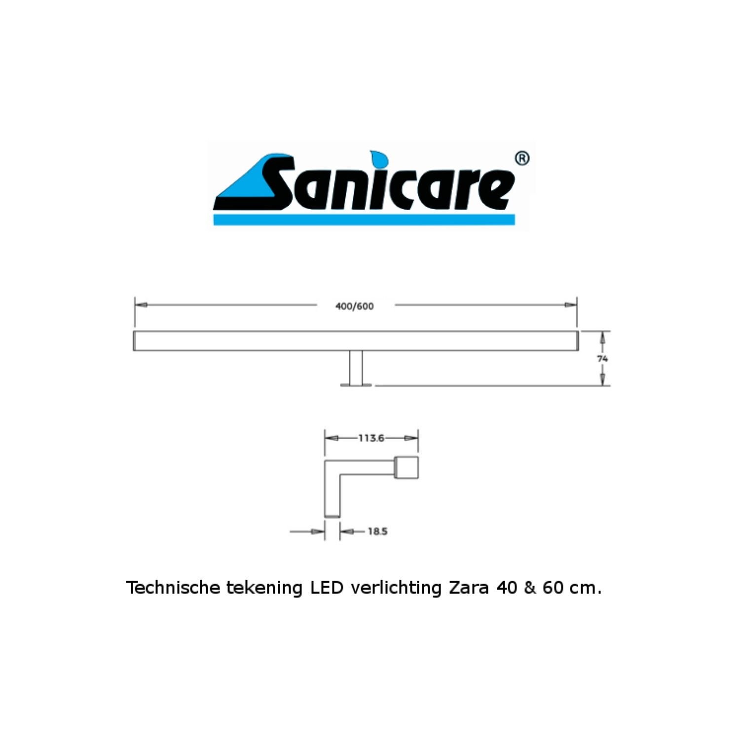 Deze spiegellamp van het merk Sanicare zorgt ervoor dat uw badkamerspiegel perfect wordt verlicht! Met deze verlichting heeft u goed zicht in de spiegel en de wastafel en kunt u ervoor zorgen dat u er op uw best uitziet!. Deze spiegellamp heeft geen uitsparing dat licht geeft, maar de hele vierkante blok voorziet uw badkamer van verlichting. De LED-verlichting van de spiegel Zara is 40 cm breed zorgt voor een stijlvolle sfeer. De spiegellamp heeft een vermogen van 6 Watt en wordt geleverd in de kleur chroom. Hij is te bevestigen op een spiegellijst of spiegelkast. De spiegellamp wordt bij u thuis afgeleverd inclusief lichtbron en heeft een garantie termijn van 1 jaar. Bovendien kent deze moderne spiegellamp een beschermingsgraad van IP44: dat betekent dat de lamp spatwaterdicht is en dus perfect bestand is tegen vochtige omgevingen!