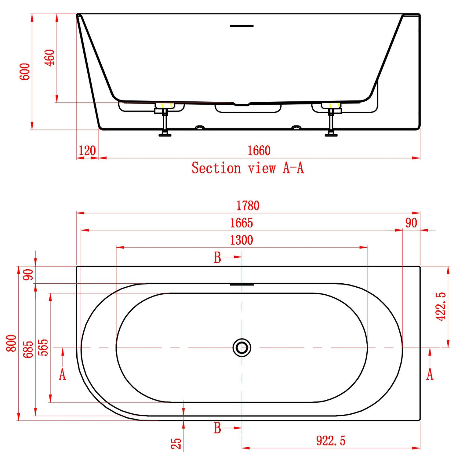 Dit half vrijstaande bad van Arcqua komt uit de Santo serie en is een back to wall bad. Dat betekend dat de achterkant van het bad tegen de muur aan bevestigd wordt waardoor het bad half vrijstaand wordt. Dit geeft een stukje extra luxe bij u in de badkamer. Het half vrijstaande bad is een uitstekende keuze aangezien deze is gemaakt van acryl in een witte kleur en vervolgens is afgewerkt met een glanzende laag. De lengte van dit half vrijstaande bad is 178 cm en de breedte is 80 cm.