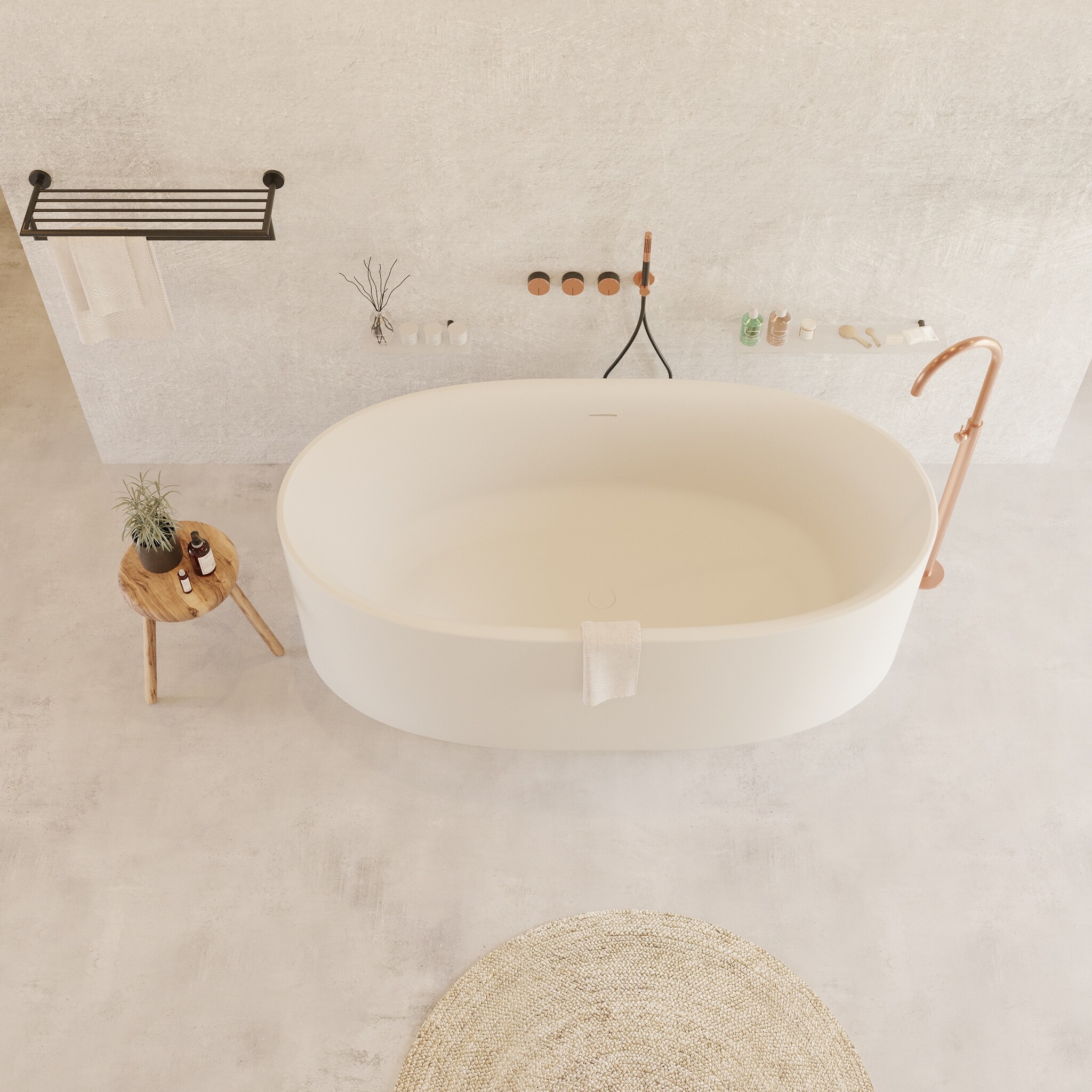 Dit moderne ligbad geeft een bijzondere uitstraling aan uw badkamer. Een heerlijk bad om in te relaxen na een drukke dag. De fraaie vorm van dit ligbad biedt veel comfort. Het bad is gemaakt van 100% hoogwaardige kwaliteit solid surface, waardoor het makkelijk te onderhouden is.
